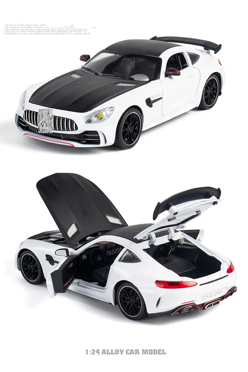 Цвет: черный, белый, зеленый Материал: сплав и АБС Масштаб: 1/24 Размеры: 1/24 около (20,5 см * 5,5 см * 9 см) Упаковка: модель автомобиля из сплава (без аккумулятора) Функция: звук и светильник отстегиваются, автомобиль открывает двери,