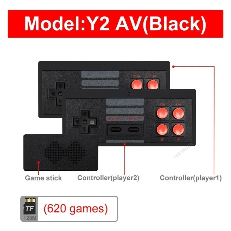 Улучшенная версия дизайна делает два геймпада более выразительными и щедрыми, придавая ретро-ощущение. Y2-AV (серый) игровая консоль встроенный 600 не повторяющихся классических игр и Y2-AV (черный) Встроенный 620 игр (немного повторяется)! Обновите игру первого поколения контроллеров видеоигр.