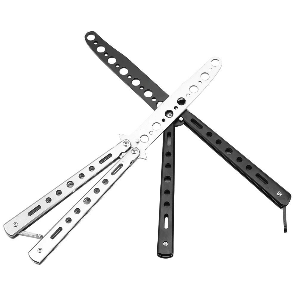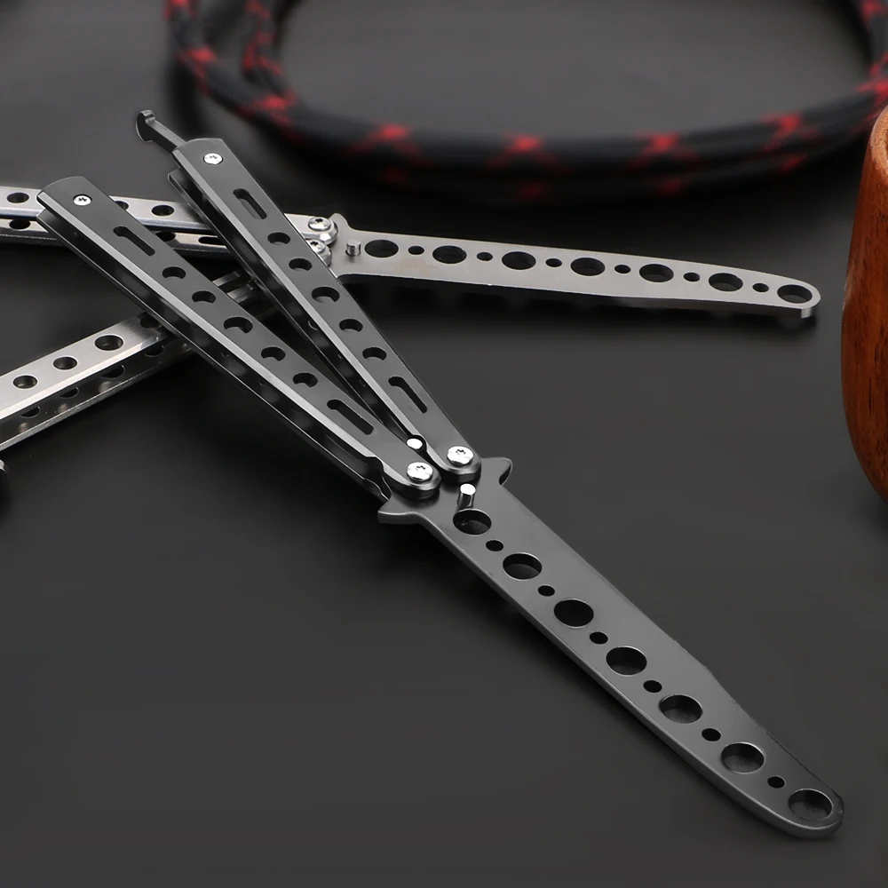 Цвет: черный, серебристый Материал:Нержавеющая сталь Общая Длина: 22,5 см Толщина лезвия: 0,26 см Посылка включает в себя: (1 шт.);Бабочка Ножи