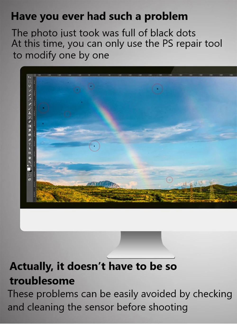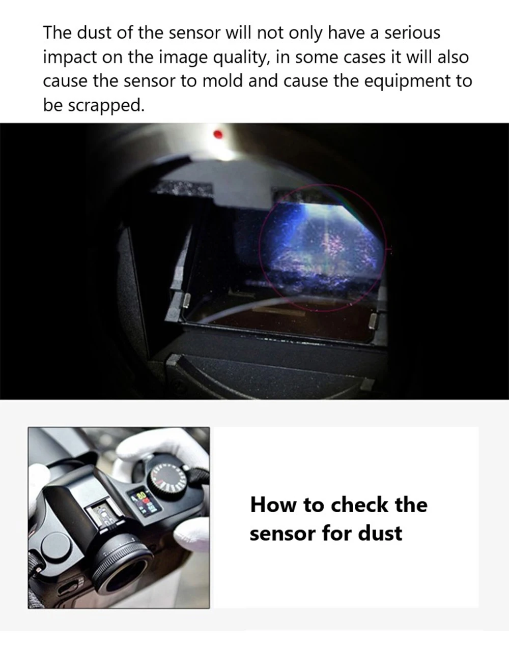 Перед очисткой DSLR убедитесь, что мощность аккумулятора выше 80% (для предотвращения Отражатель или затвор от падения из-за недостаточной мощности и блокировки очистки Инструмент, который может повредить камеру); Прежде чем очистить датчик беззеркального Камера с 5-осевой анти-функция дрожания, батарея должна быть удалена, чтобы убедиться, что Устройство полностью отключено. Для более желаемого эффекта очистки выберите Достаточно освещенная среда с меньшим количеством пыли и чистого воздуха.
