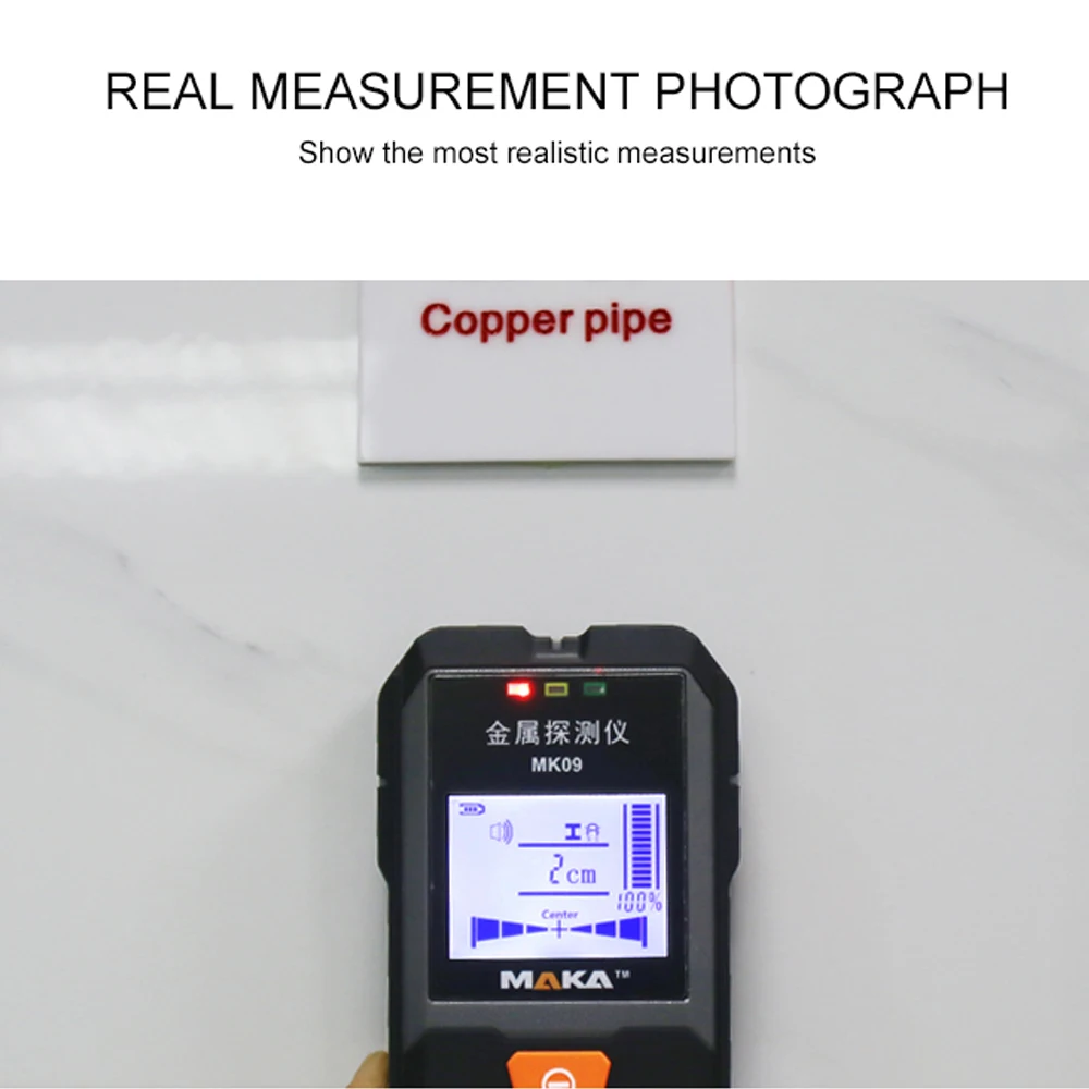 Детектор может обнаруживать металлы (стальные стержни, медные трубы и т. Д.) и кабели, скрытые в стенах, потолках и полах.