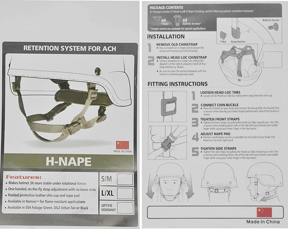 Система фиксации шлема H-Nape была разработана для повышения безопасности, комфорта и стабильности китайских ремней, используемых в баллистических шлемах МИЧ/Ач.
