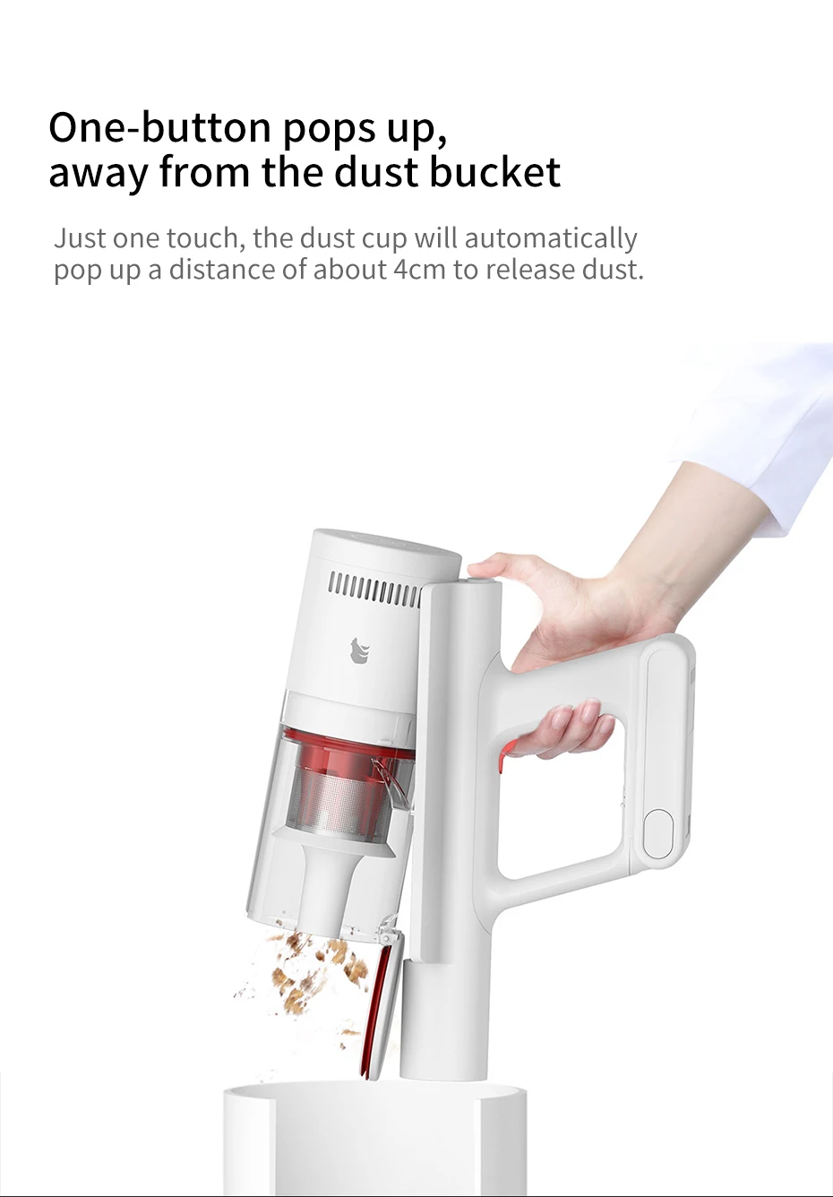 ● Одно нажатие выскакивает пыль, устойчивое всасывание