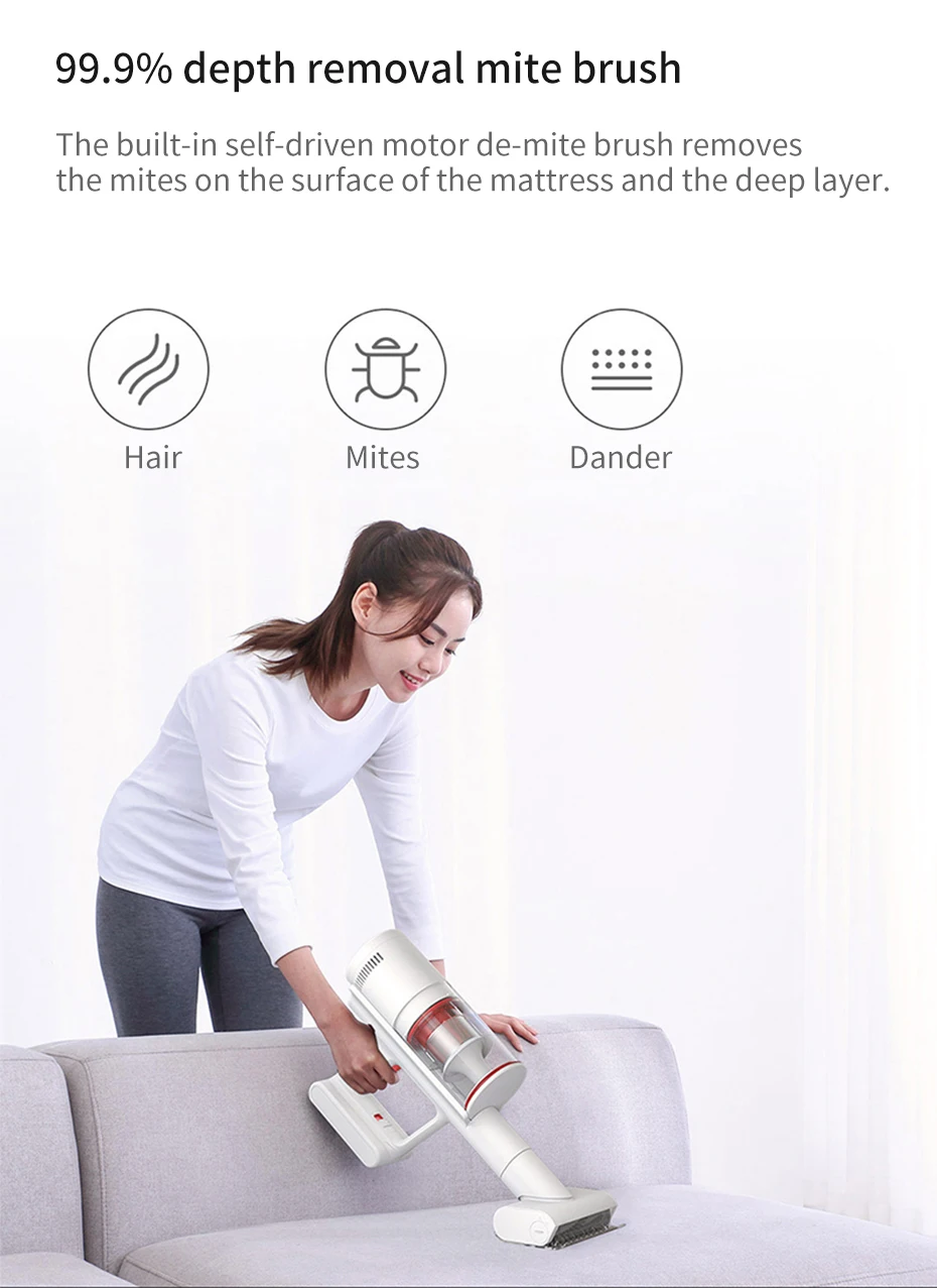 ● Клещи для удаления глубины 99.9%, встроенная самоуправляемая щетка для удаления клещей удаляет клещи на поверхности матраса и глубоком слое
