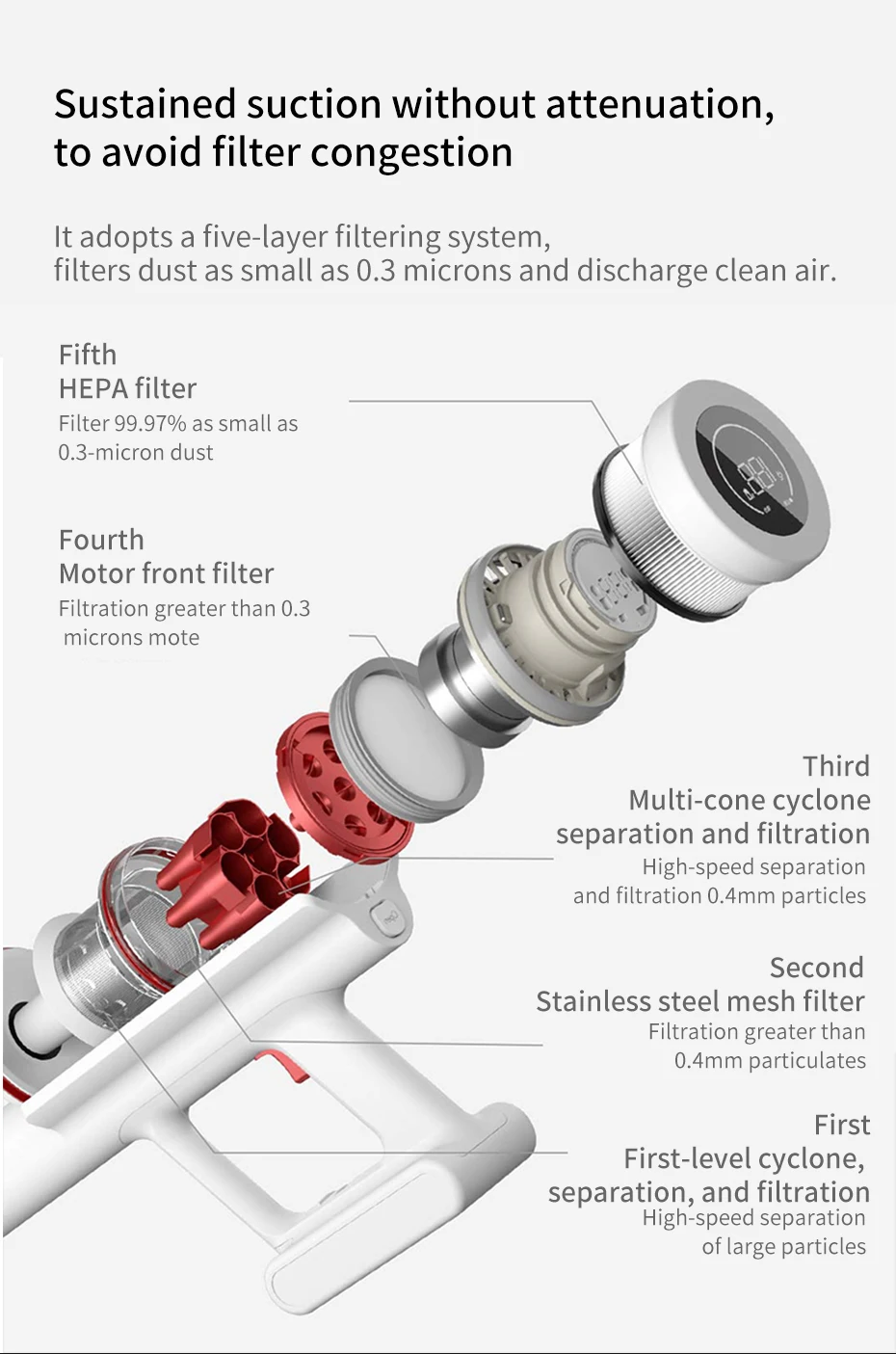 ● Он принимает пятислойная система фильтрации, фильтры для пыли, как малые, так и 0,3 мкм, а также выполняет чистой