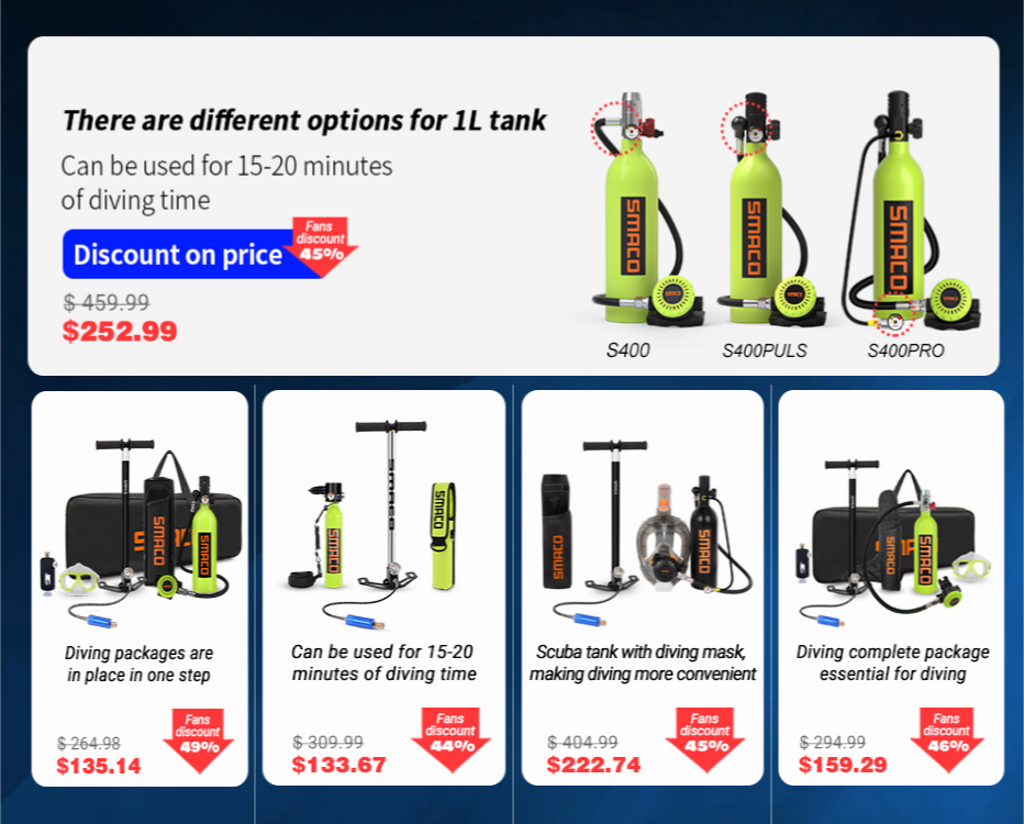 -Используя кислородный баллон 1L, подводное дыхание может достигать 20 минут.