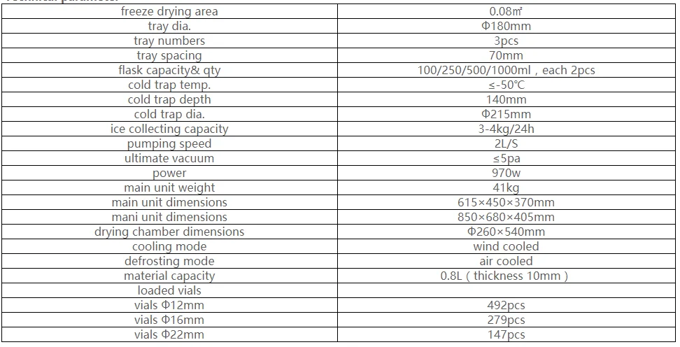 . С функцией предварительного замораживания образцов, большим отверстием для холодной ловушки, без внутренней катушки и низкотемпературного холодильника.