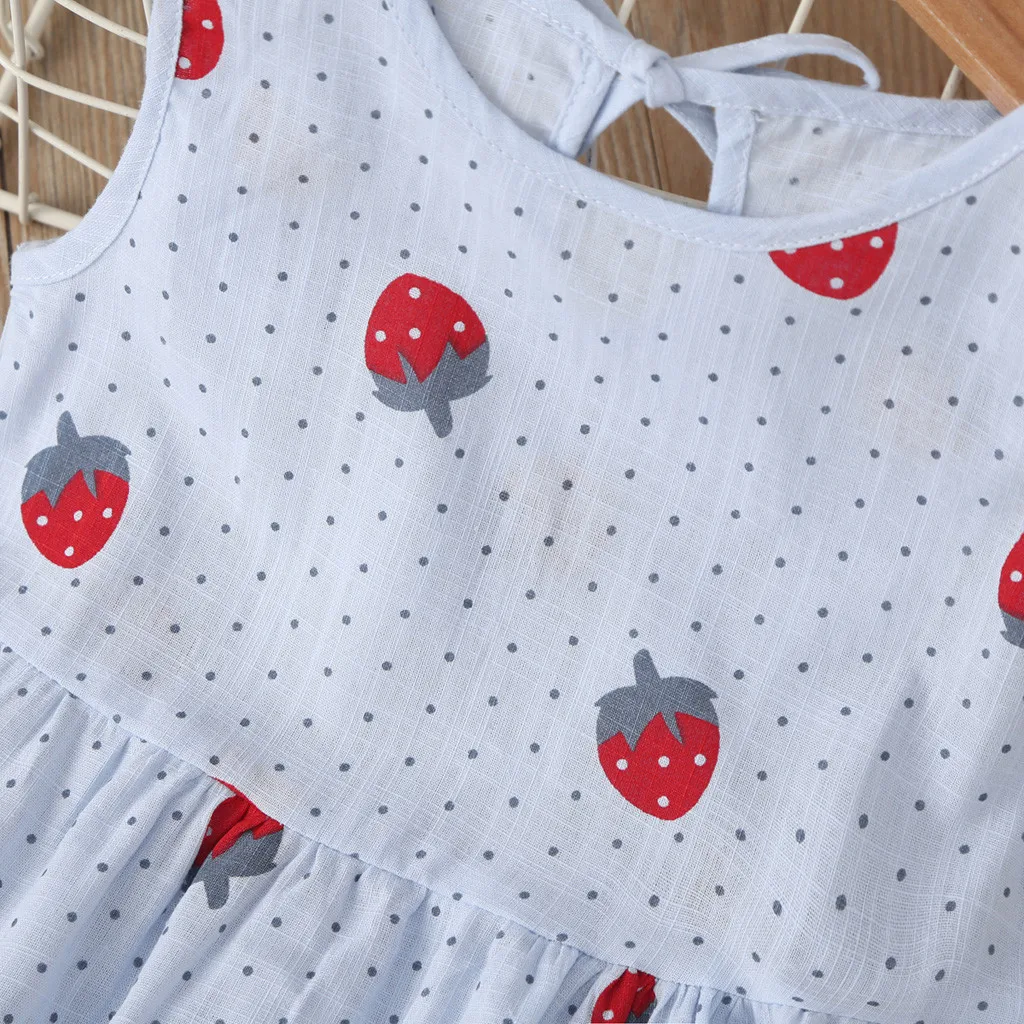 Летнее платье принцессы с рисунком клубники для маленьких девочек