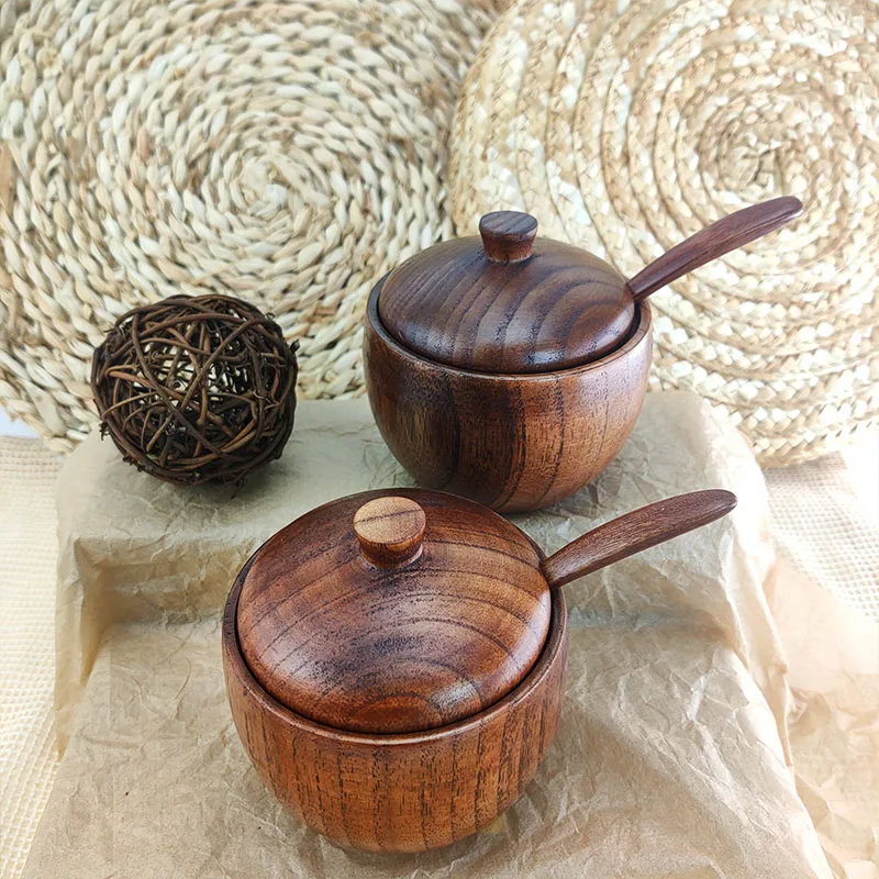 Горячая деревянная баночка для специй, соли и перца приправа баночка натуральный бак для специй с крышкой и ложкой контейнер для приправы кухонные инструменты