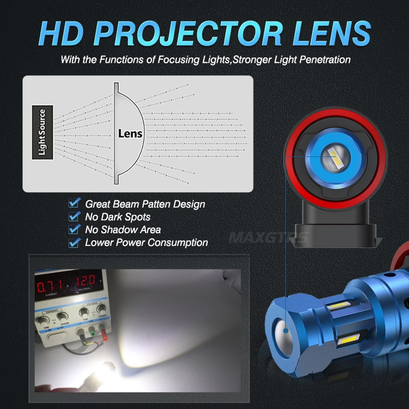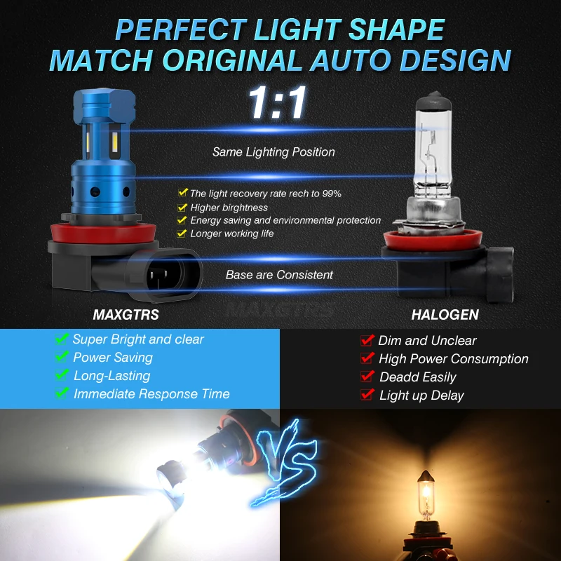 Мини-размер, высокая яркость, низкое потребление, более 2,5 раза ярче, чем галогенные лампы.