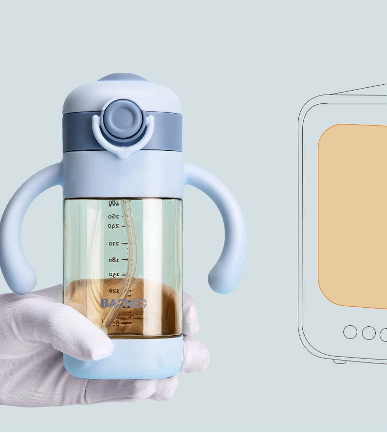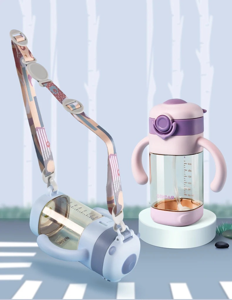 1. Чашка для 2 использования, соска + сопло всасывания, плавный переход ребенка; 2. Есть две характеристики 260 и 330 мл; Оснащен удобными лямками, более удобно выходить; 3. Материал пищевого качества: корпус чашки из немецкого материала PPSU; 4. Запатентованная солома типа "V", которая не протекает вверх дном, слегка выкусывается из воды, герметичная и устойчивая к дросселю; 5. Соска + гравитационный шар: ребенок старше 0 лет, средний расход может быть выбран; Всасывающая насадка для укуса для ребенка более 6 месяцев; Прямая Питьевая солома Для детей старше 2 лет ремень удобнее для выхода; 6 .. Вся чашка может быть разобрана, очищена и дезинфицирована, симпатичная форма, 2 цвета на выбор