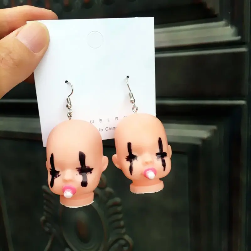 Серьги-Подвески ручной работы в виде разбитой злой сонной куклы, серьги-подвески для маленьких кукол, серьги-подвески для женщин, модные ювелирные изделия