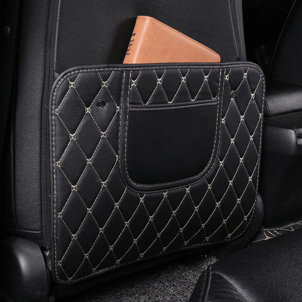 Leather Car Kick Mat with Phone Storage Pocket Auto Seat Back Protector Waterproof Backseat Protection Cover