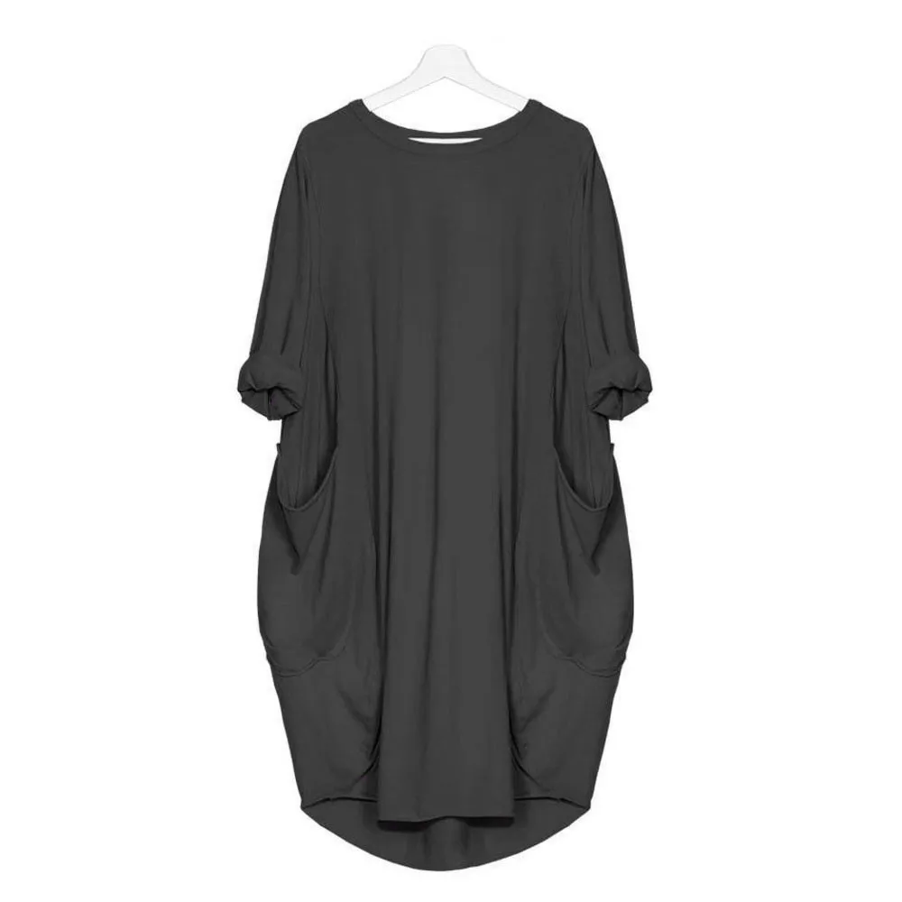 Модное свободное платье с карманами, Женские повседневные длинные топы с круглым вырезом, платье размера плюс