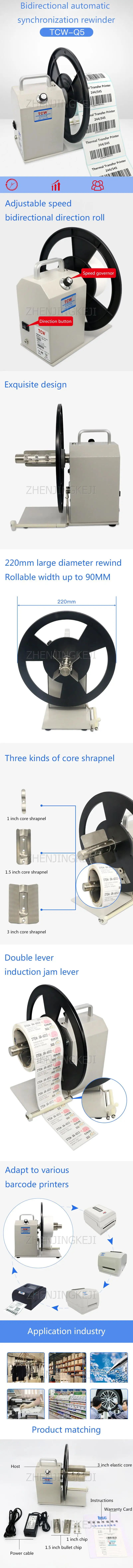 Модель: QQTCW-Q5 Напряжение: 100-240 В Частота: 50/60 Гц Выходное напряжение: 24 В Вес изделия: 3 кг Размер изделия: 21*22*25 см Скорость перемотки: 1 ~ 8 дюймов/секунду Ширина перемотки: 90 мм Внешний диаметр перемотки: 220 мм/рулон Основной Размер бумажной трубки: 1-дюймовый сердечник (25,4 мм) 1,5-дюймовый сердечник (38,1 мм) 3-дюймовый сердечник (76,2 мм) Тип перемотки: Двусторонняя перемотка, автоматическая синхронная перемотка Рабочая среда: температура: 0-45 ℃ Относительная влажность: 25%-85%