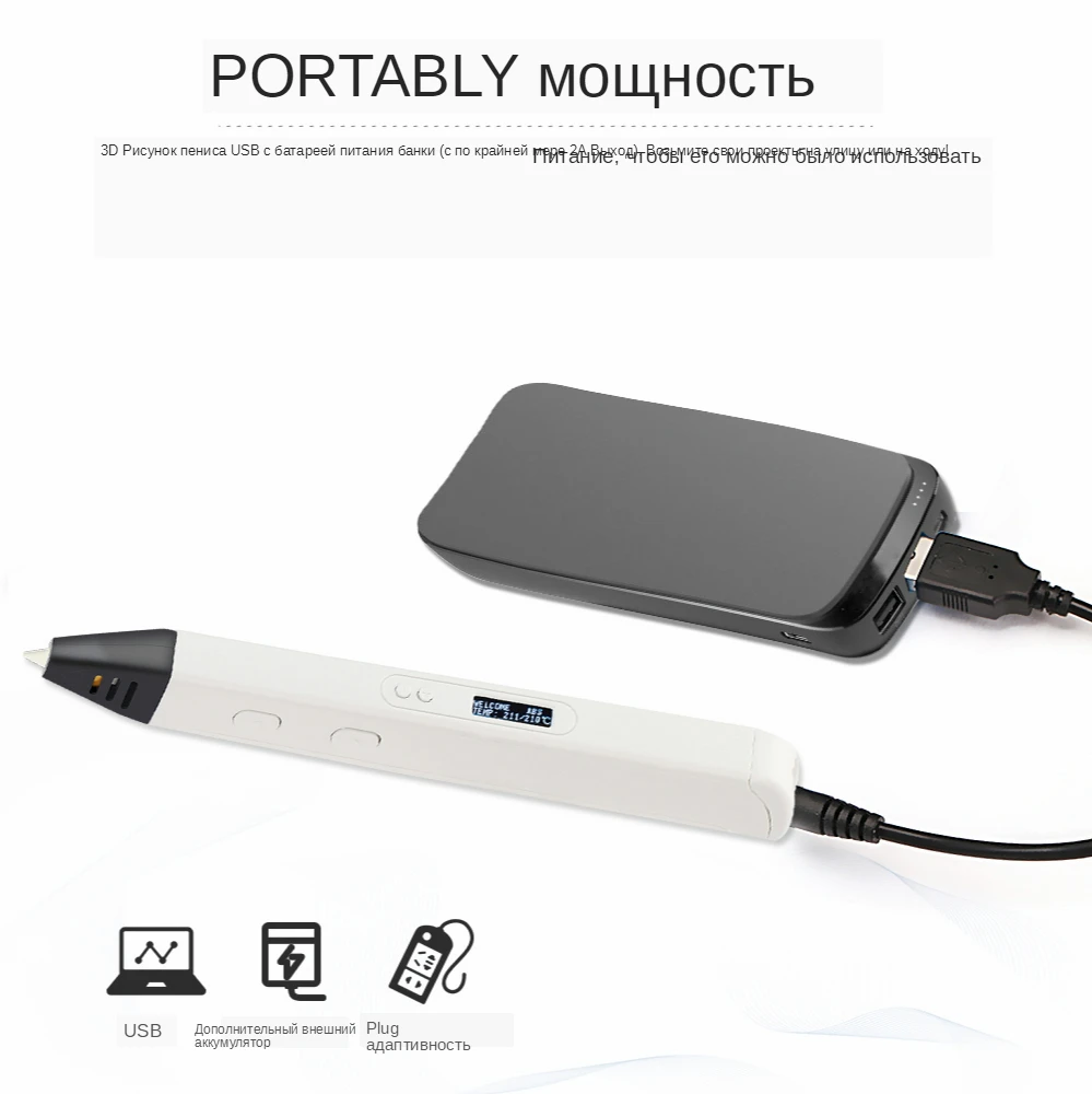 • Высокое качество-ручка для 3d-печати, Встроенный прочный и надежный двигатель, обеспечивающий превосходный опыт рисования. 3d Ручка изготовлена из высококачественного экологически чистого пластика, Нетоксичная и безопасная. Специализируется на дизайне для детей. • Один ключ управления скоростью-Регулируемый регулятор скорости 3d-ручки позволяет регулировать скорость и поток для оптимального контроля нити при использовании 3d-ручки для рисования. • Двойная кнопка контроля температуры-температура 3d-ручек регулируется с шагом в 1 градус от 130 до 230 С для оптимальной тонкой настройки. Большой oled-дисплей на 3d-принтере четко показывает цифровой и ABS/PLA режим, легко менять температуру и режим. • Ультратонкий и легкий-Вес ручки всего 45 г/1,6 унций. Придерживаясь эргономичного дизайна, 3d-ручка для печати имеет чистые линии, удобный захват 3d-ручки для принтера сделает вашу работу хорошо. • Бесплатная нить-эта 3d-ручка для рисования поставляется с 3 цветами заправки для нитей, чтобы удовлетворить потребности в различных рисовых ремеслах. Отодвиньте нить и отрежьте конец нити хорошо, чтобы творчески нарисовать в следующий раз. RP800A Технические характеристики: Режим разрядки: термоплавкое экструзионное формование Печать диапазон: неограниченна Скорость подачи: Регулируемый Материал печати: ABS/PLA Поддержка внешнего аккумулятора: Да Источник питания: 5 В/2 А Мощность: 10 Вт (макс.) Входная мощность: 100-240 В, 50-60 Гц Штепсельная Вилка: США, Великобритания, ЕС, Австралия (согласно вашей стране, чтобы отправить) Цвет: синий, фиолетовый, желтый, белый (опционально) Рабочая температура: 130-230 ℃ по Цельсию Температура нити: ABS220 ℃, PLA190 ℃ Сопло: 0,7 мм керамическое сопло Диаметр нити: 1,75 мм Размер товара: 17,5*1,7*2 см/6,9*0,7 * 0.8in (Д * Ш * В) Вес изделия: 45 г/1,6 унций Посылка: 20,5*12,2*6,5 см/8*4,8*2,5 дюйма (Д * Ш * В) Посылка: 450 г/15,8 унций Особенности продукта 3d-ручки для рисования: • Совместимость PLA и ABS. • Usb-порт питания, может заряжаться от внешнего аккумулятора, компьютера, ноутбука, что делает его более удобным в использовании. • Идеальный подарок для детей, который помогает детям улучшить пространственное мышление, культивировать творение и художественные навыки. Посылка включает в себя: 1 * ручка для 3D-печати 1 * нити (по вашему выбору) 1 * инструмент (для регулировки температуры) 1 * Руководство пользователя (на английском языке) 1 * AC/DC адаптер 1 * USB кабель для передачи данных