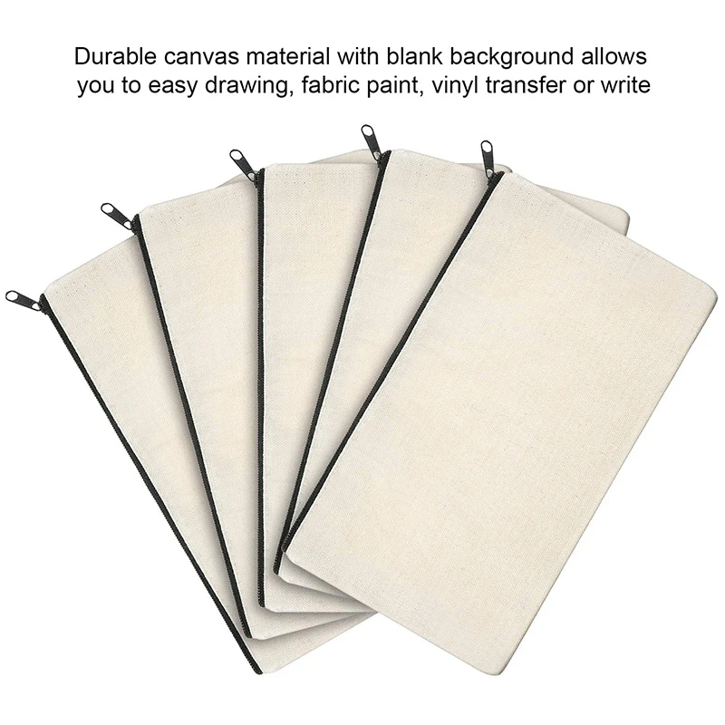 Эти косметички изготовлены из холста, холст мягкий и прочный, можно наносить и стирать повторно, а металлическая молния прочная и гладко тянет, идеально подходит для ежедневного использования, а также может быть хорошим подарком.