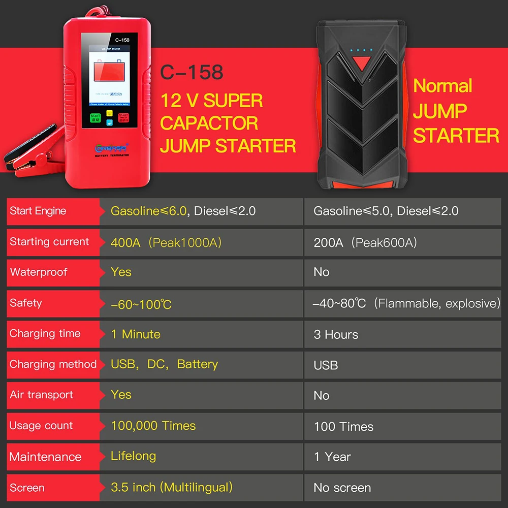 Особенности:Прочная высокотехнологичная конструкция конденсатора, полная зарядка от автомобильного аккумулятора в течение 1 минуты.Чистый конденсатор, без аккумулятора, хранение при высоких и низких температурах, не беспокойтесь.Защита от перегрузки и перезарядки.Высокая эффективность отвода тепла.Зарядка при низком напряжении (5 В), мультизарядный метод с автомобилем. Аккумулятор, адаптер постоянного тока, адаптер для сигарет или внешний аккумулятор неограниченное использование.Водонепроницаемость, испытание на повреждение при падении, прочность и безопасностьУмный ЖК-дисплей, прост в эксплуатации.Защита от короткого замыкания и обратной полярности.Характеристики:Бренд: JDiagПоддержка автомобилей: Бензин до 5 л и дизельное топливо до 5 л;Вход: зарядный ток MINI USB 3 А; Зарядный адаптер постоянного тока 5-12 В, ток 5 А; Зарядка автомобильного аккумулятора выше 5 В, интеллектуальное управление током 3 А-15 А;Номер модели: 12 В карбазис C-158Выход: 12 ВПусковой ток: 400 АРабочая температура: -60 ℃ ~ + 100 ℃Вес посылка: 1600 г/56,4 унцииПосылка: 28,5*18*8,5 см/11,2*7 * 3.3inПосылка тация:1 * конденсаторный стартер1 * Руководство пользователя1 адаптер для зарядки сигаретКупил у этого магазина пилу.Покупал WOYOFADA,а пришло какое то фуфло.12" шина а пилит только бруски 50*50,и если не применять усилие.Если... Читать отзыв полностью...