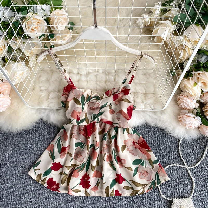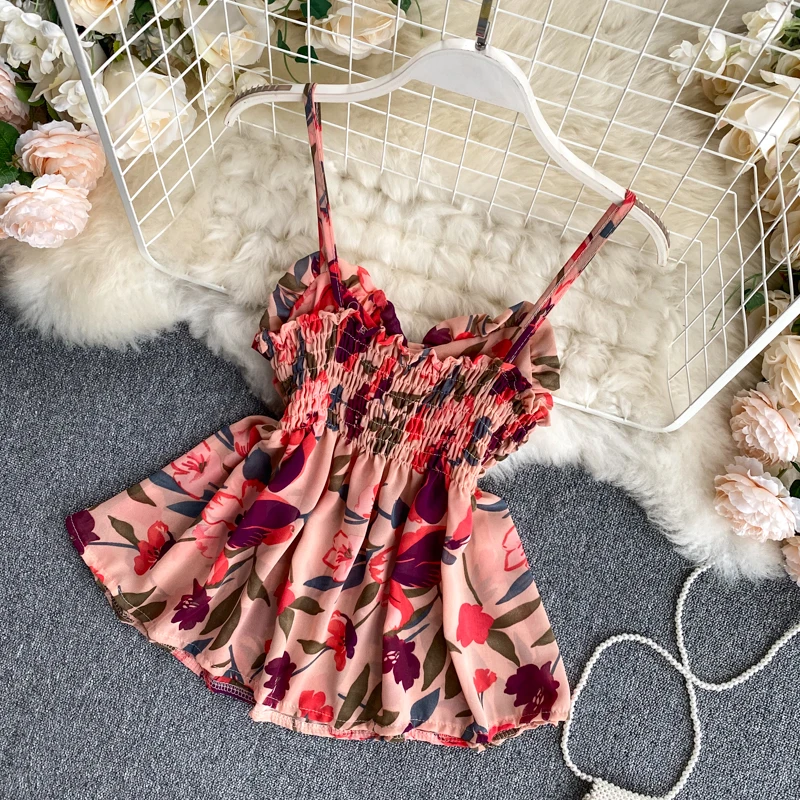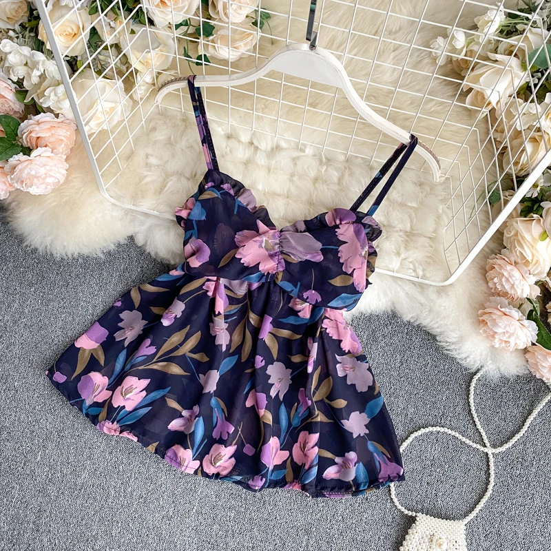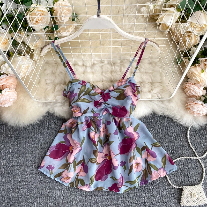 Дешевый и шикарный женский Летний шифоновый топ на бретельках с милыми цветами