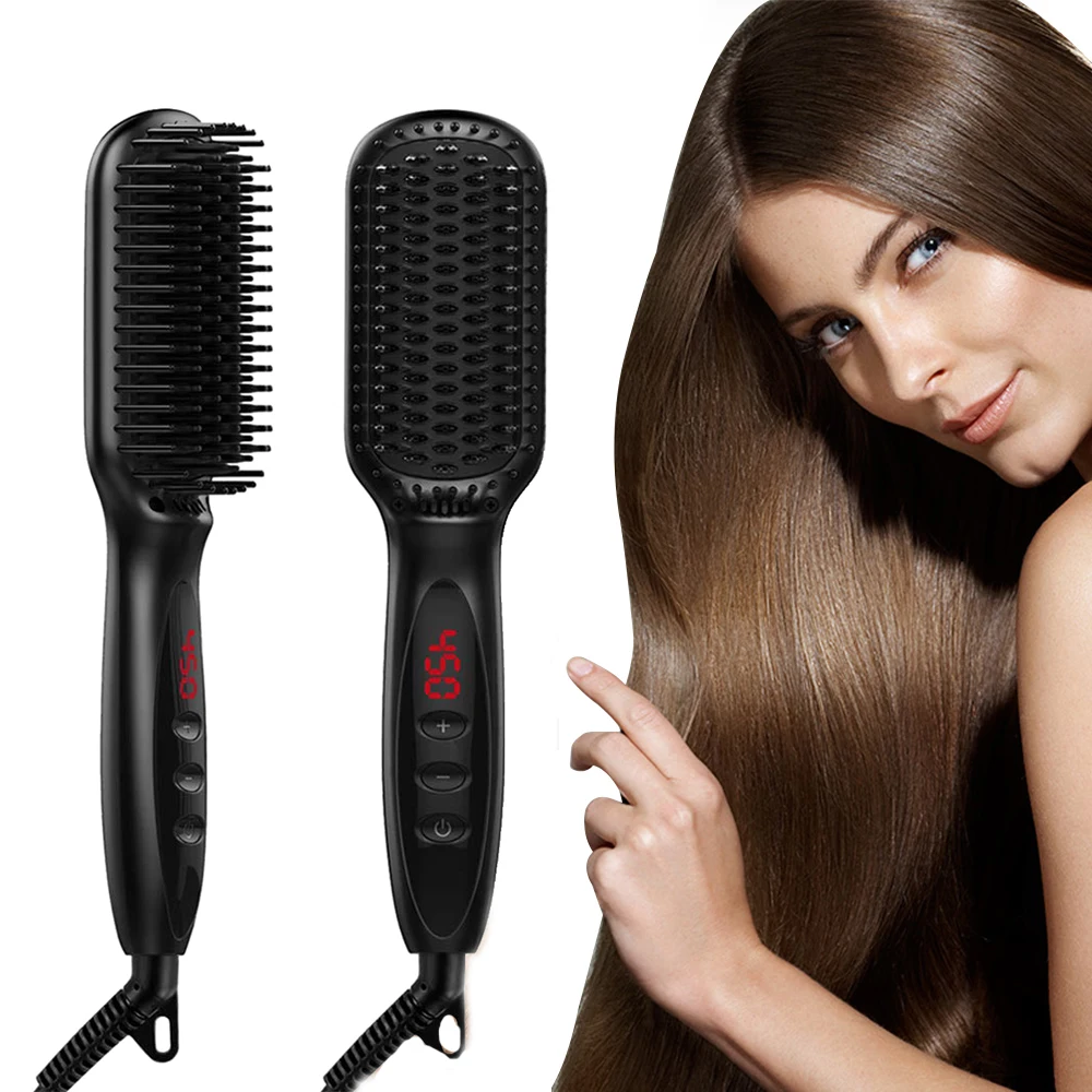Профессиональный выпрямляющий гребень для волос и бороды Электрический ионный Выпрямитель для волос с подогревом керамический плоский железный инструмент для укладки бороды