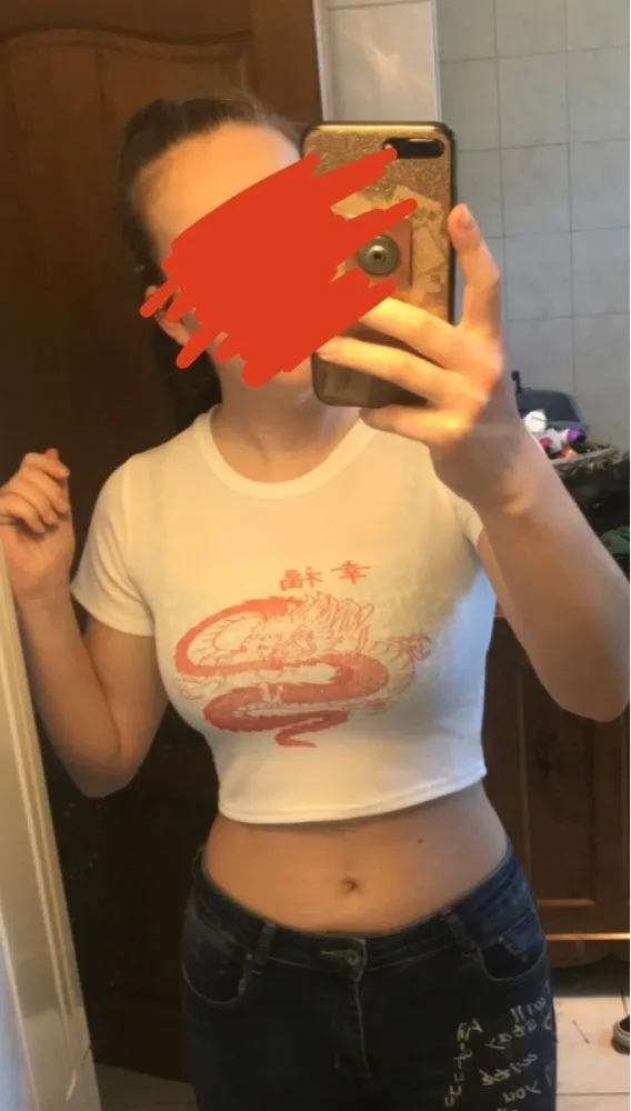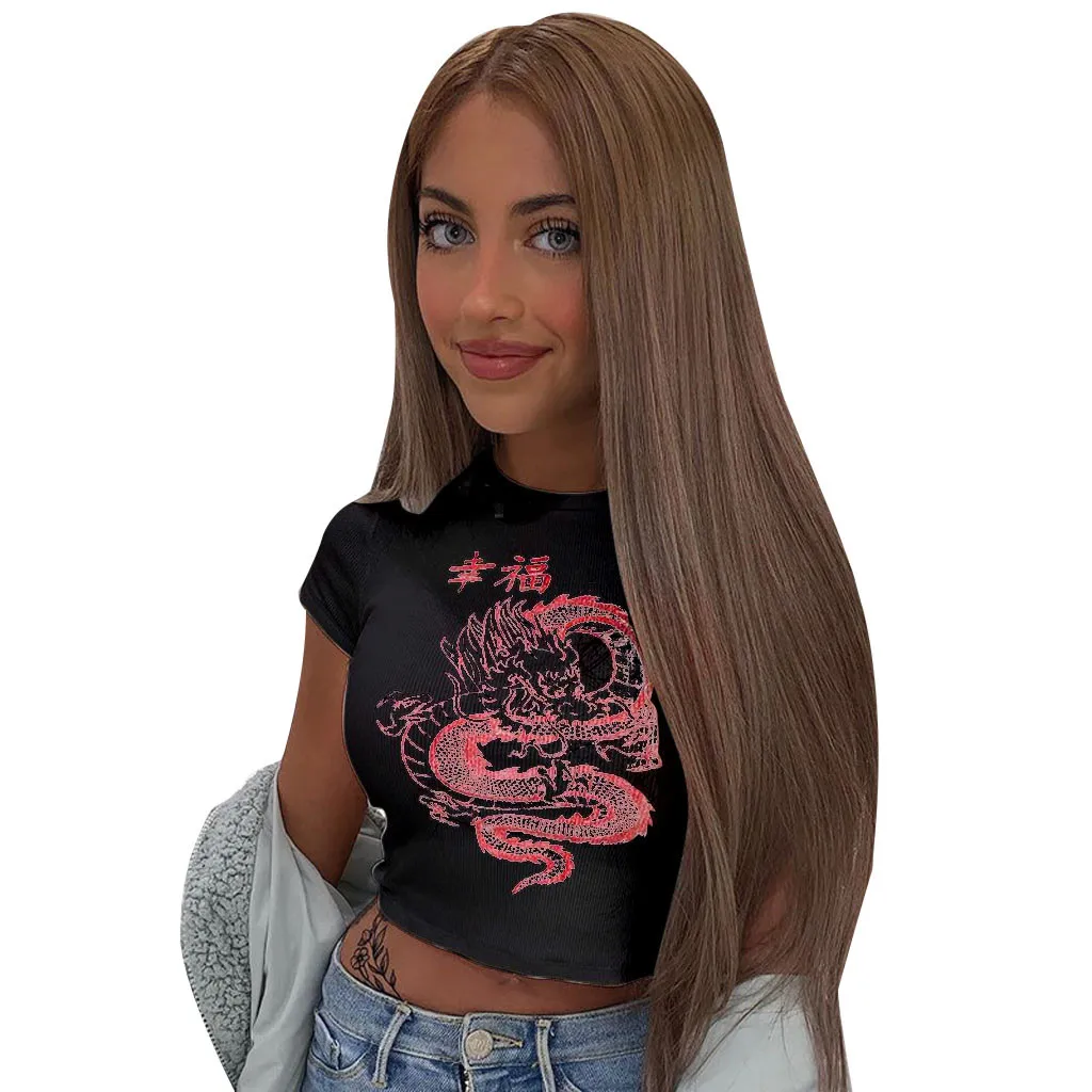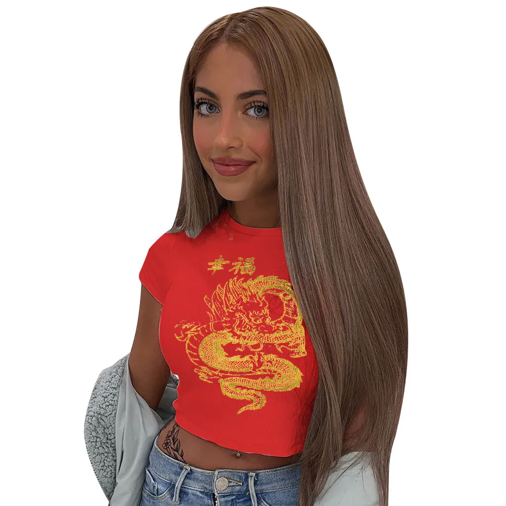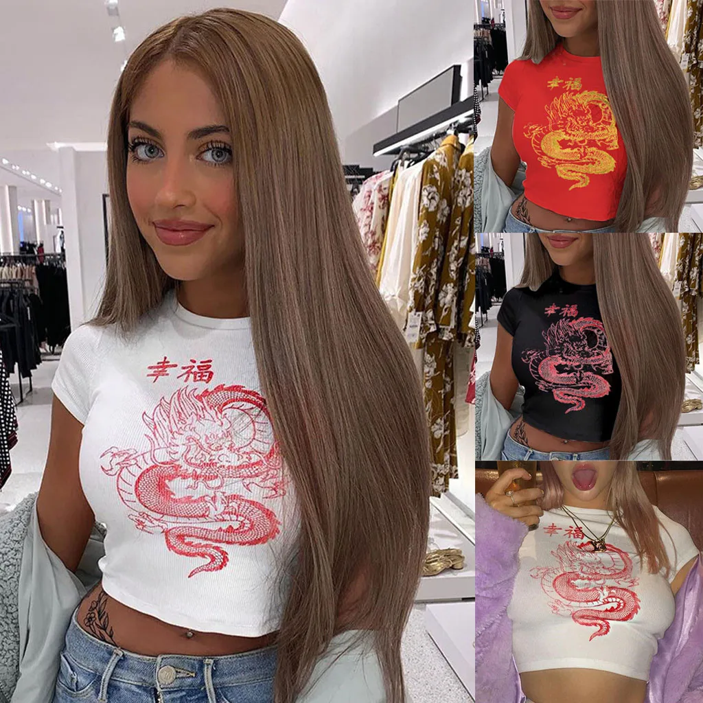 Белая китайская Футболка с принтом дракона, Женская Повседневная футболка на бретелях, уличная одежда