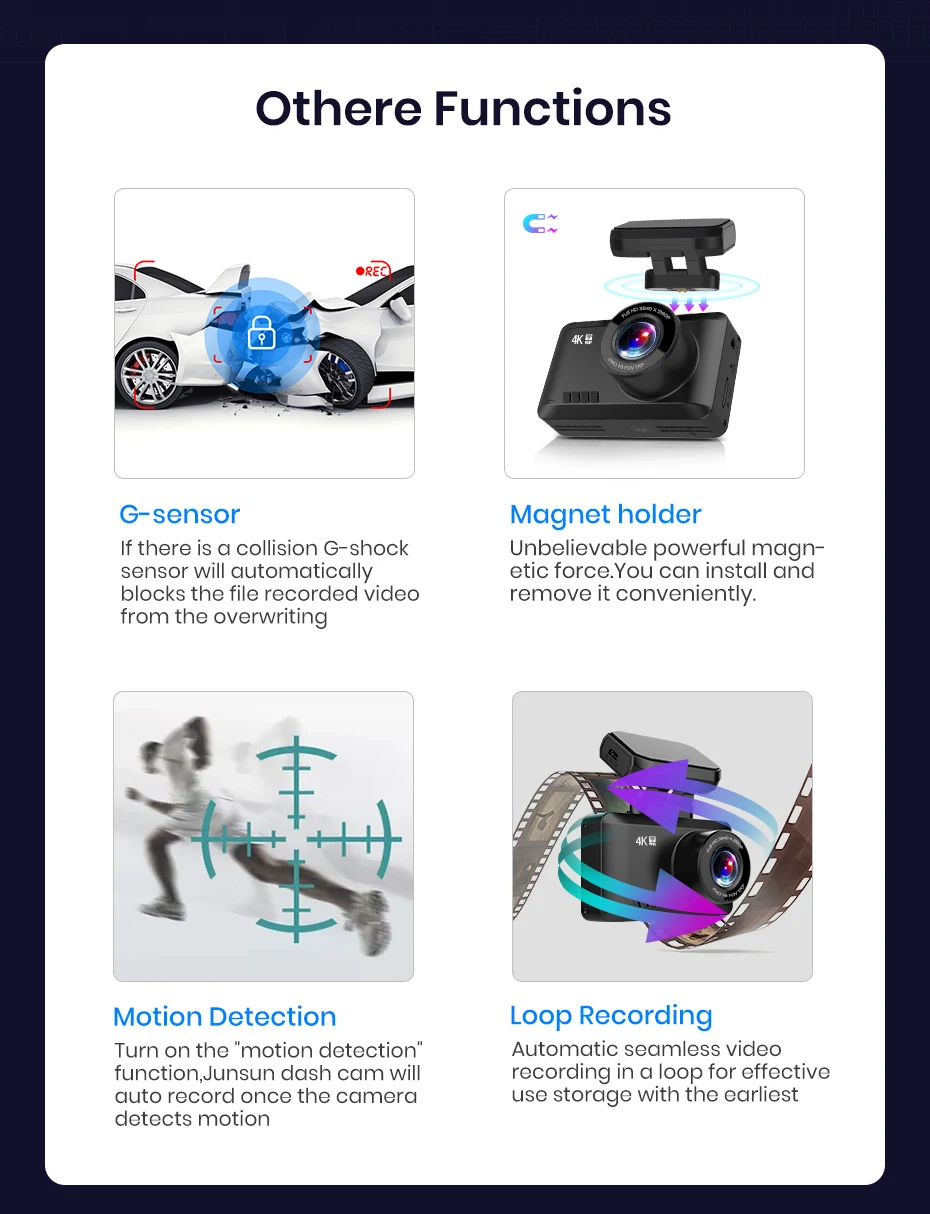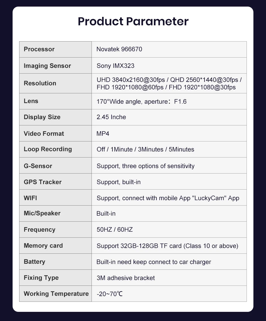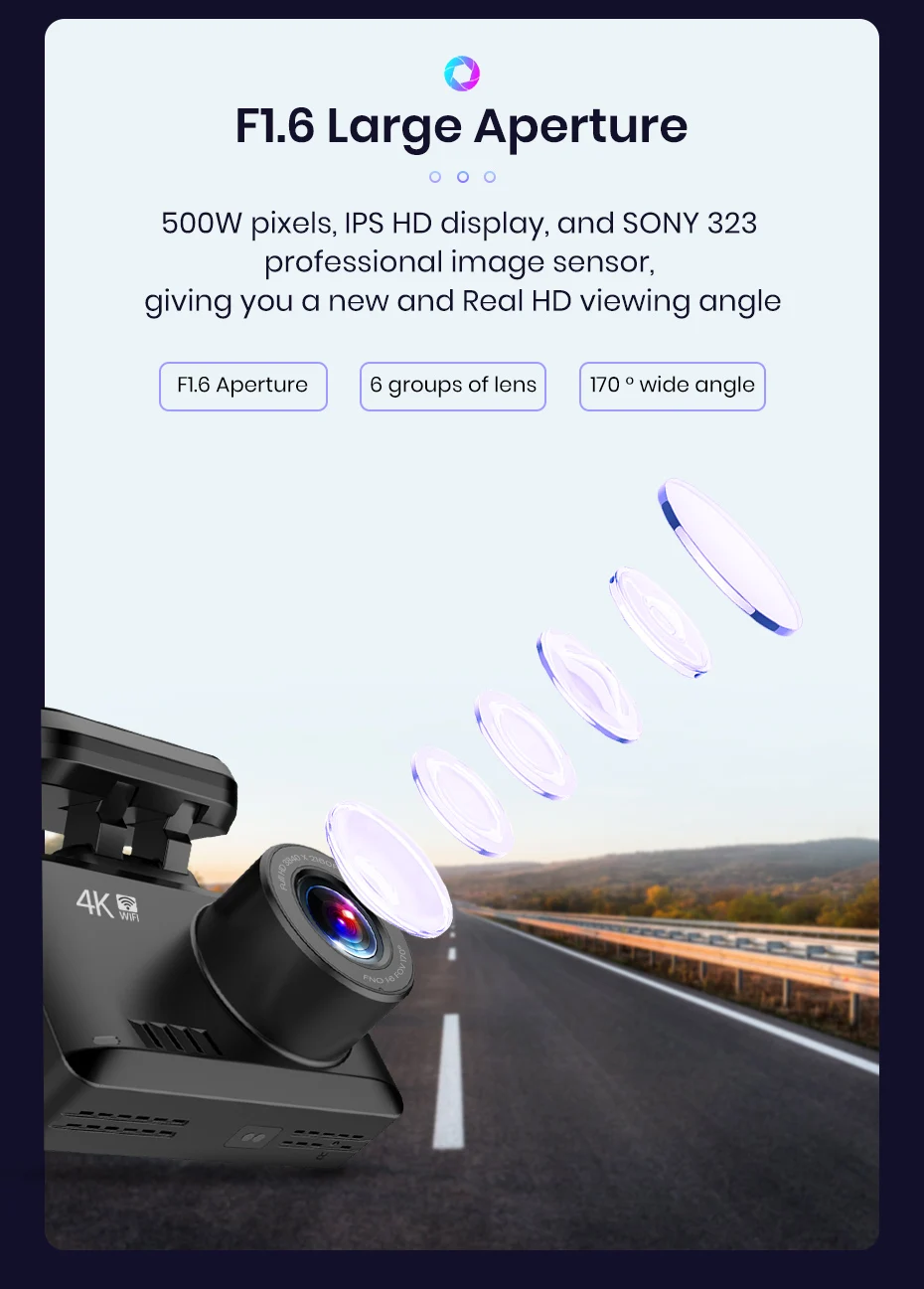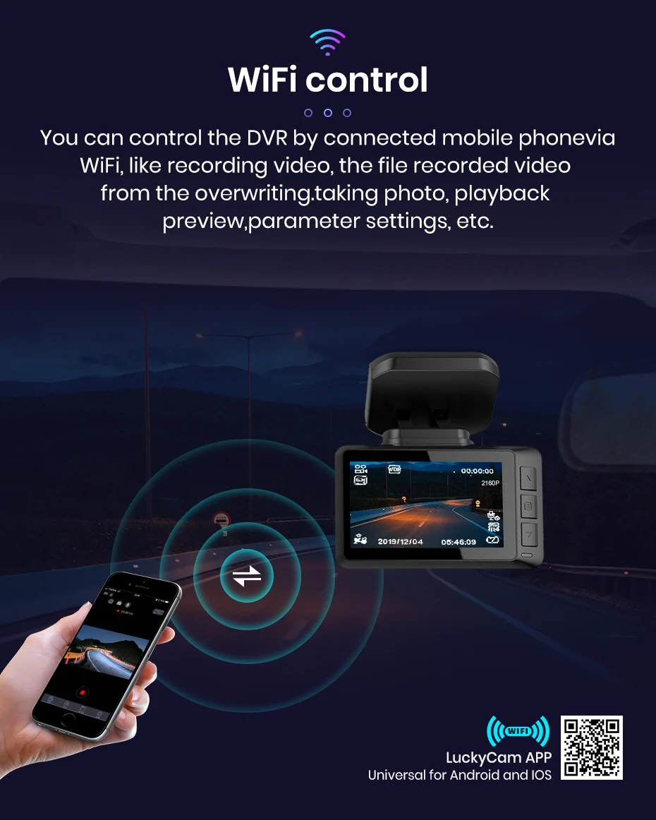 > Новейшие технологии-фотосъемка беременности Просто перемещая руку под видеорегистратором, она будет ощущать и делать фото, делать больше удовольствия и удобства; > С украшением в виде кристаллов-четкое видео при слабом освещении Расширенная камера приборной панели, разработанная с чипсетом Novatek NT966670 и сенсором Sony IMX 323 imagine, разрешение до 3840x2160 @ 30fps, записывающее четкое видео днем и ночью; > Легко загружать и поделиться Встроенный Wi-Fi и выделенное приложение DashCam позволяют просматривать, загружать, настраивать и делить диск с помощью телефона. > GPS-трекер Смотреть скорость и маршрут вождения на компьютере от предоставленного игрока > 24H * 7 поддержка обслуживания Наша цель заключается в том, чтобы усердно работать, чтобы сделать инновационное оборудование и программное обеспечение для автомобильной камеры DVR, чтобы предоставить вам тот индивидуальный опыт. Мы обеспечиваем обновления прошивки, по бесплатно.