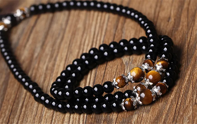 6 мм 108 бусин обсидиан бисера Молитва мала-розарий браслеты для мужчин буддийский Будда медитация тигровый глаз камень браслет для женщин мужчин