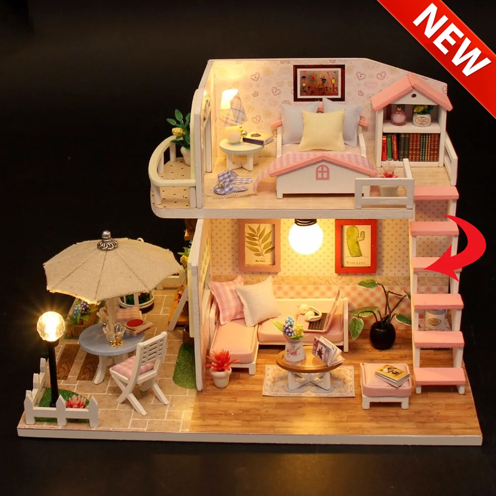 DIY кукольный домик Миниатюрный деревянный кукольный домик Модель игрушка мебель набор кукольные домики чердак игрушки Детский подарок на день рождения Рождество