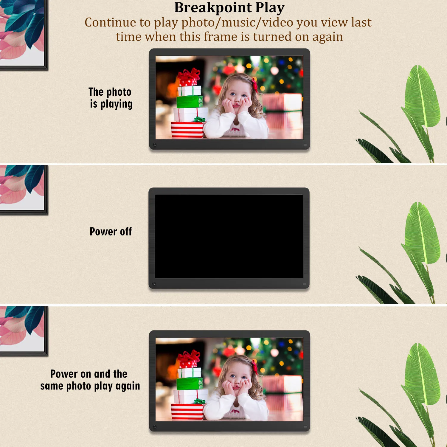 29 декабря 2020Показать ещеСмотреть 1 отзывОписание Характеристика: 17-дюймовая цифровая фоторамка с высоким разрешением 1920*1080 ЖК-дисплей дисплей. Отображение ваших любимых фотографий в автоматическом режиме слайд-шоу. Богатые и яркие цвета показывают ваши фотографии с замечательным качеством изображения. Воспроизведение видео и музыки со встроенными динамиками и выходным разъемом для наушников. Часы, календарь, будильник и настройка времени. Встроенный Стереодинамик, чтобы наслаждаться любимой музыкой. Без требуемой установки и программного обеспечения для установки. С двумя usb-соединениями: один для чтения флэш-диска U; Один для подключения к компьютеру. Вы даже можете взять sd-карту с камеры и воспроизводить фотографии напрямую без дополнительной обработки. В комплект входит подставка для поддержки настольных компьютеров. Компактный ИК-пульт дистанционного управления для удобного доступа к элементам управления воспроизведением. Может использоваться как MP3/MP4/Электронная книга/Календарь или часы. Это станет отличным центром для любого дома, офиса или бизнеса. Эта цифровая рамка с индукцией человека, датчик находится в пределах 2 м, когда вы стоите спереди или проходите мимо, будет светильник. Спецификация: Материал: пластик Размер экрана: 17 дюймов Цвет: черный, белый Вилка: ЕС, США, Великобритания Разрешение: 1920*1080 ЖК-дисплей Язык: многоязычный Безопасная цифровая карта памяти (SD), мультимедийная карта (MMC), карта памяти (MS) Считывает карту памяти: макс. до 128 г Формат изображения: JPEG,BMP,GIF,PNG Формат музыки: MP3,WMA,OGG,FLAC,APE,AAC,AC3,ATRA,DTS Формат видео: MKV,AVI,MOV,MP4,TS,ASF,FLV,PMP,RMVB,MPG,VOB,WMV Вход адаптера: AC 110 ~ 240 В Адаптер Выход: 5V 2000mA Источник питания: адаптер переменного тока 110 ~ 240 В Аккумулятор контроллера: 1 * CR2032 (не входит в комплект) Посылка: 1 * цифровая фоторамка 1*32 Гб sd-карта (не входит в комплект) 1 * подставка для рамки 1 * пульт дистанционного управления 1 * Адаптер питания переменного тока 1 * Руководство пользователя (на английском языке)