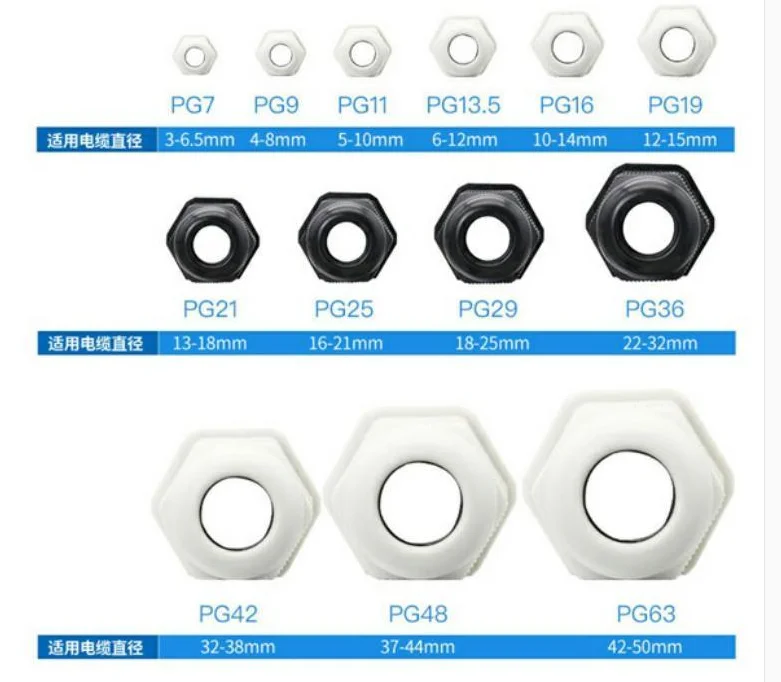Waterproof Nylon Plastic Cable Gland PG7 PG9 PG11 PG13.5 PG16 PG18 PG21 PG25 PG29 PG36 10pcs Black White Wire Connector