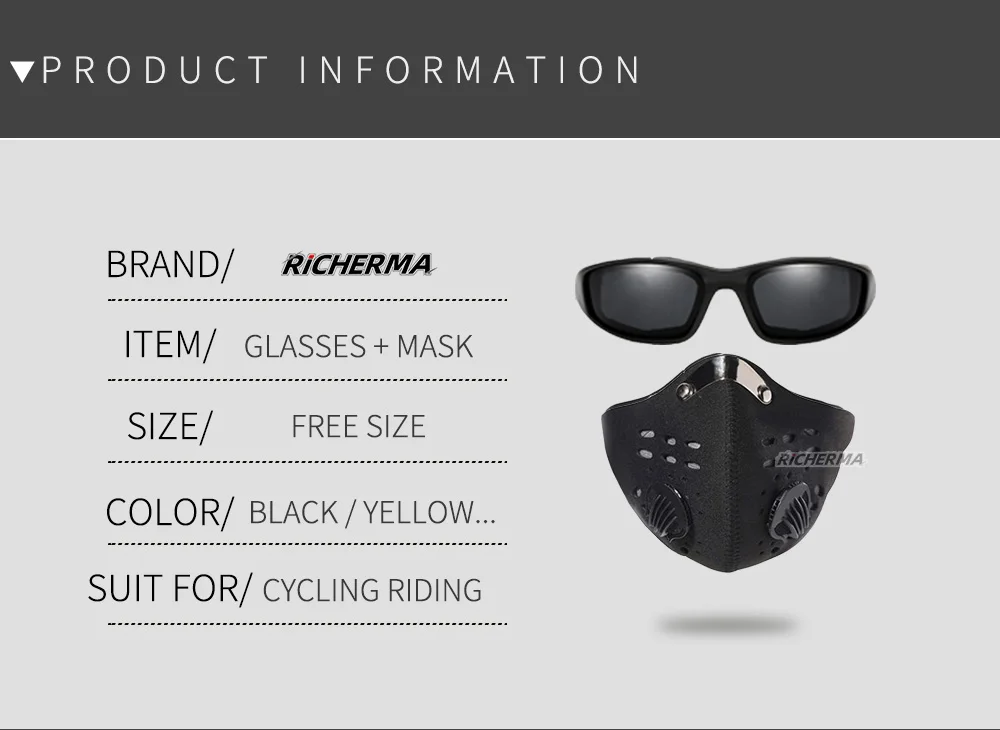 Тип изделия:Велосипедные очки + маска для рта