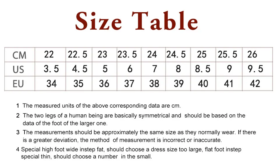 ✿Пожалуйста, выберите правильный размер в соответствии с длиной Вашей стопы и нашей таблицей размеров.