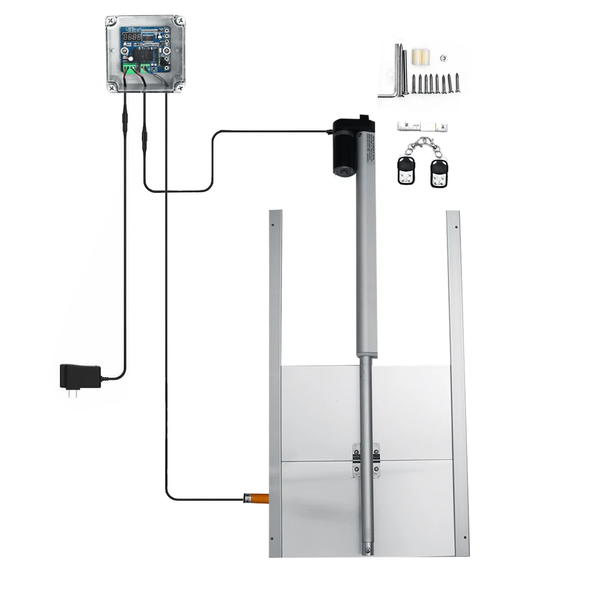 [Прост в установке и использовании] без сложного подключения или проводки, оснащенного всем необходимым оборудованием и иллюстрированными инструкциями, вы можете установить открывалку для куриных дверей и легко настроить программу, кроме того, он также включает в себя 2 пульта дистанционного управления, вы можете открыть/закрыть дверь.