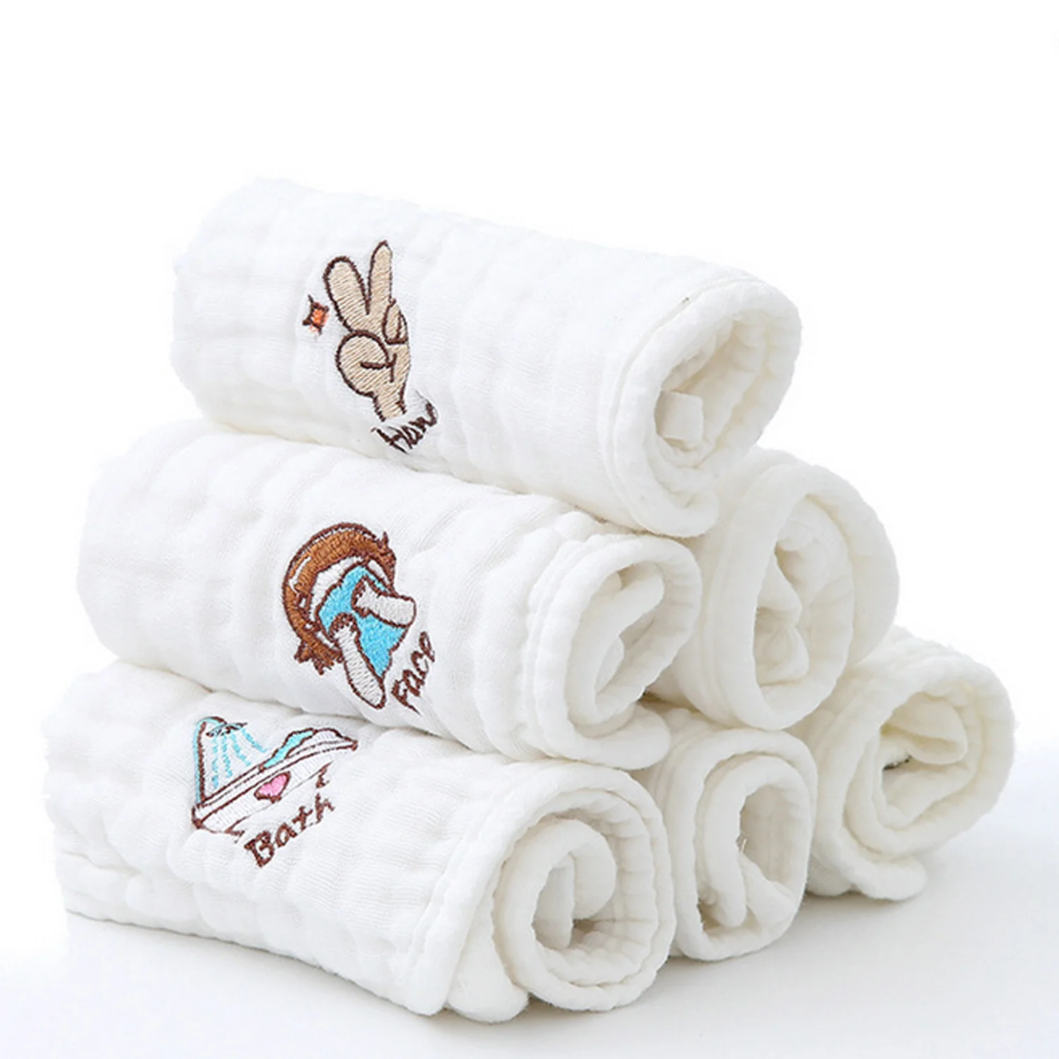 6 шт. детская отрыжка, Милая Вышивка, мягкий абсорбирующий хлопок, для новорожденных, для ванны, для бедер, для ног, для лица, слюнявчик, набор полотенец, 30x30cm