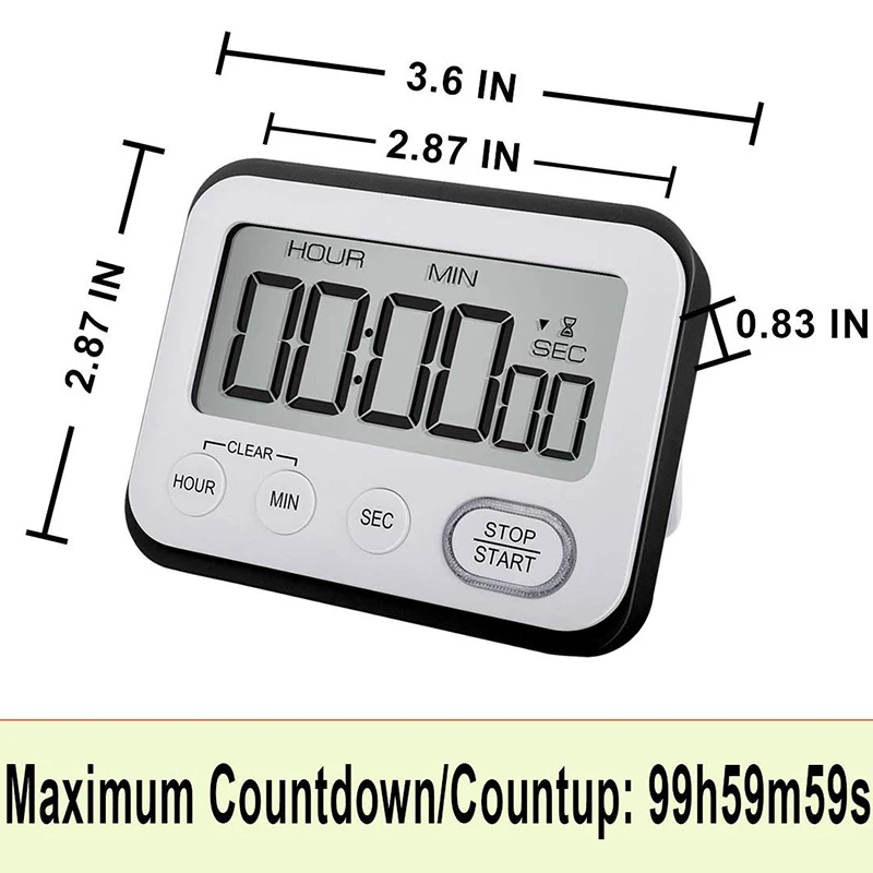 Таймер, часы и будильник: кнопка «Пуск/стоп»-Настройка одной кнопки в 3 режимах. По сравнению с другим таймером приготовления, большим дисплеем с большими цифрами, 2 сети на спине, что адсорбционная сила более сильна. Поэтому вы не беспокоитесь о падении. Вы также можете использовать подставку для установки таймера на стол.