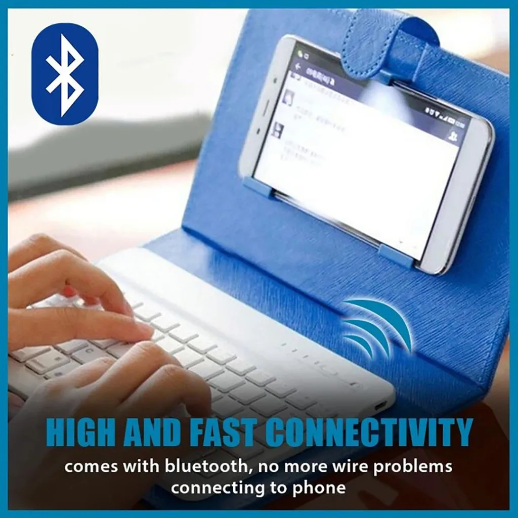 Беспроводная Bluetooth клавиатура + чехол-подставка из искусственной кожи, чехол-книжка для iOS и Android