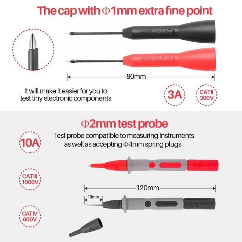 Набор тестовых проводов: поставляется с 10 комплектами тестового комплекта для мультиметра, обеспечивает более безопасный, бесконтактный способ подключения для удовлетворения большинства потребностей в электронном тестировании, идеально подходит для тестирования цифровой схемы, используемой в отслеживании, проверке, захвате.