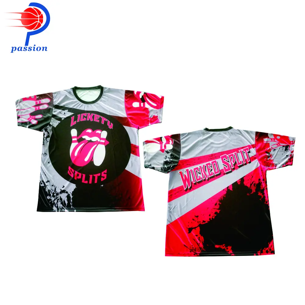 2020 новое прибытие индивидуальный дизайн сублимированная печать вырез лодочкой боулинг футболки для продажи