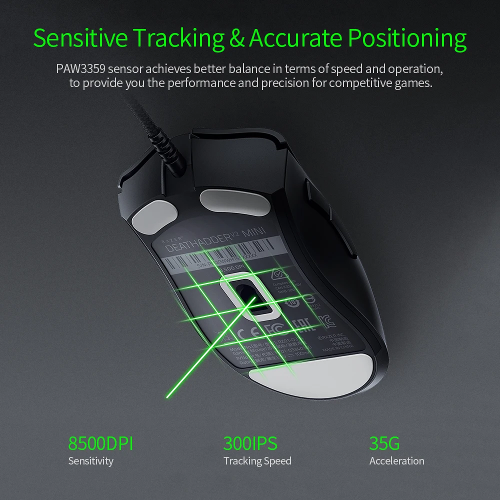 PAW3359 датчик обеспечивает лучший баланс с точки зрения скорости и работы, чтобы обеспечить вам производительность и точность для конкурентных игр, с ведущей в отрасли 8500DPI, гарантируем, что даже самое лучшее движение от этой эргономичной мыши отслеживается с последовательностью. Оснащенный интеллектуальными функциями, датчик становится еще более точным, что обеспечивает острый уровень точности для головных снимков, выигранных в играх.