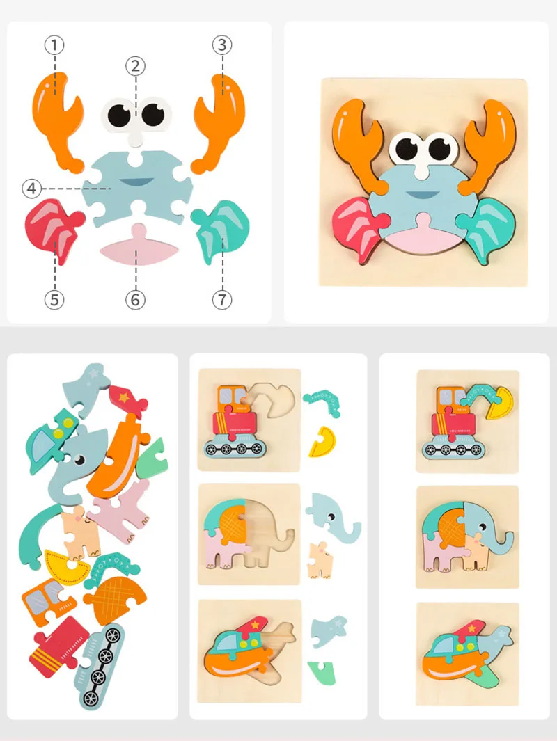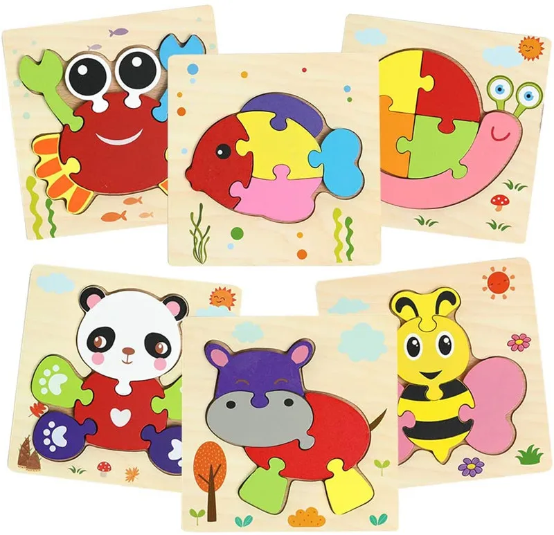 Cartoon Animals 3D Wooden Puzzle Montessori Toys Wooden Jigsaw Puzzle Children Toys Educational Puzzle For Toddler 2 3 4 5 Years