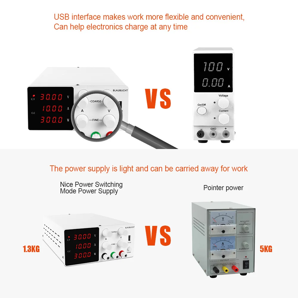 1. Имеет полную функцию операционной защиты. 2. Высокая эффективность, низкая пульсация, малый объем, светильник вес. 3. Двойной дисплей напряжения, тока и высокой точности. 4. Стабилизация напряжения, ограничение тока, простая работа. 5. Двойной вход напряжения и удобный выбор. 6. Вентилятор контроля температуры, рассеивание тепла, низкий уровень шума. 7. Двойной потенциометр более точная регулировка. 8. Точная регулировка тока и напряжения. 9. Дисплей с 4 цифрами
