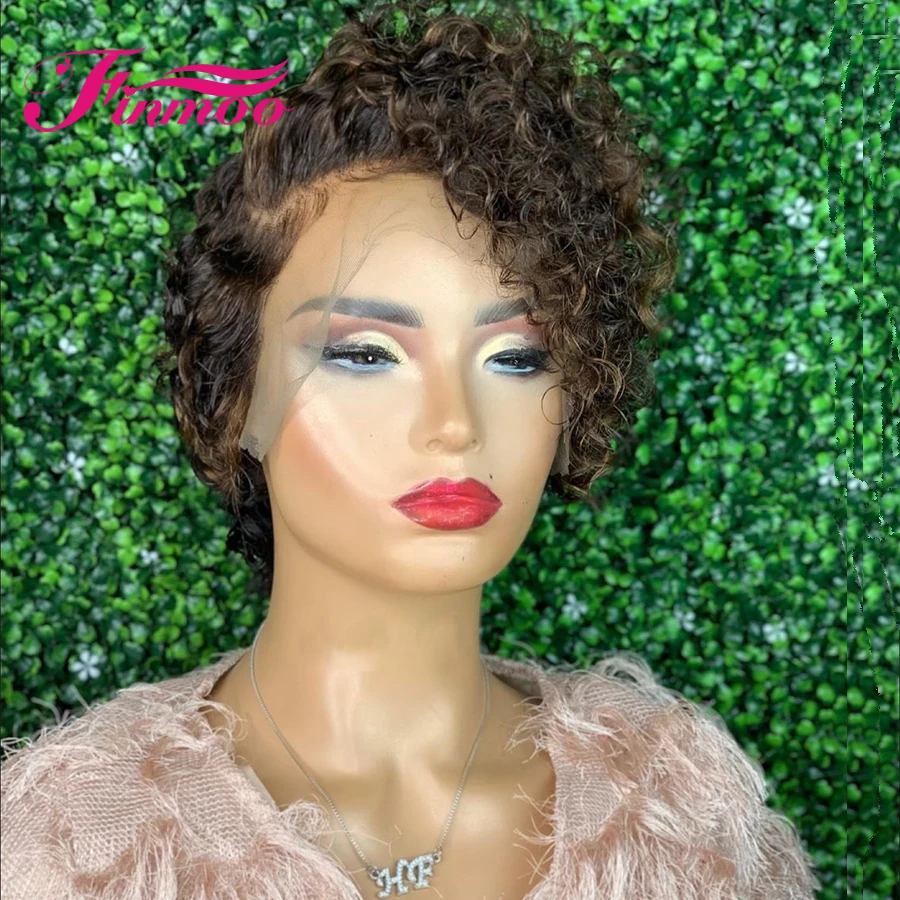 150% парик с изображением Пикси, короткий Боб, кудрявые человеческие волосы спереди, парики для черных женщин, предварительно выщипанные индийские волосы Remy 13x4, кудрявые человеческие волосы, парик