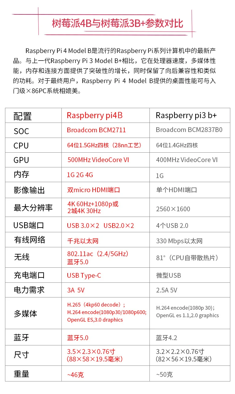 Тип 1 rpi4b 2G запасные части для Красной машины