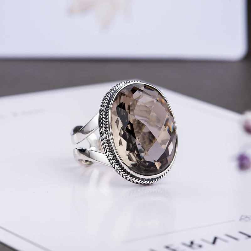 Vinregem Брендовое Стерлинговое Серебро 925 пробы натуральный дымчатый кварц драгоценный камень свадебное обручальное старинное кольцо ювелирные украшения оптовая продажа