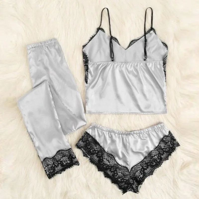 Комплект сексуального белья из 3 предметов, шифоновая Пижама, Женский пижамный комплект, сексуальная соблазнительная ночная сорочка, милый топ на бретельках и шорты, Пижама