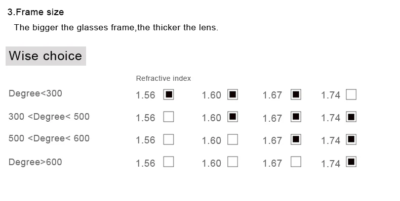 SPH: + 3,00 ~ + 8,00; CYL:+ 0,50 ~ + 2,00