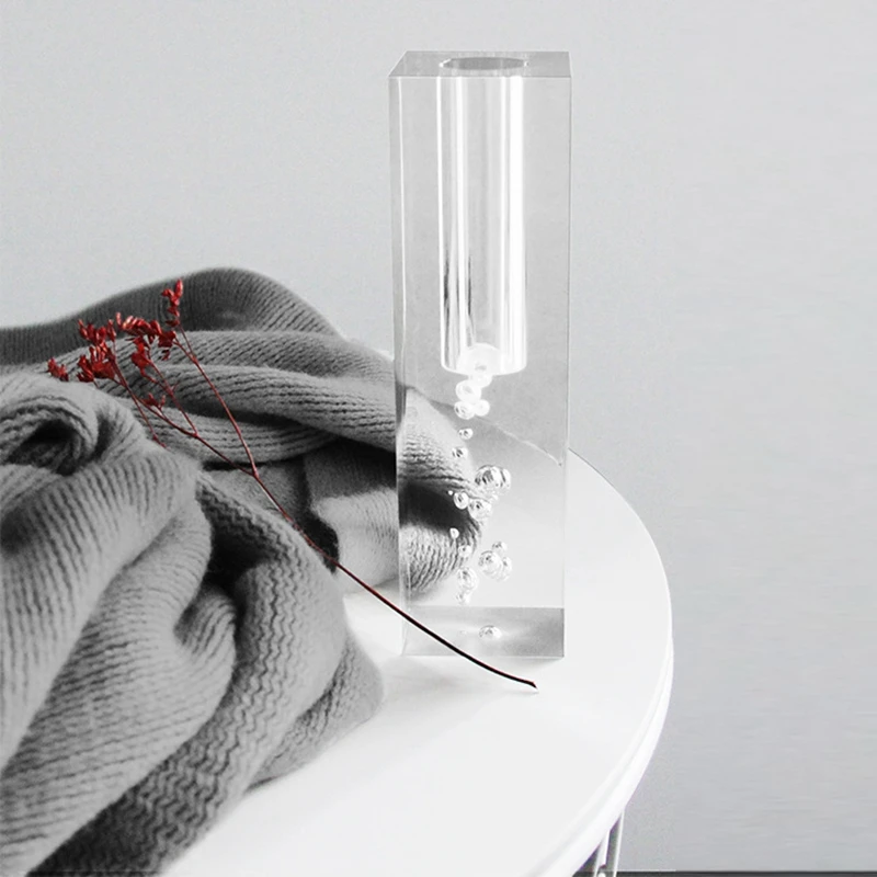 Скандинавская акриловая ваза квадратная колонна стеклянная пузырчатая Цветочная композиция украшение для дома
