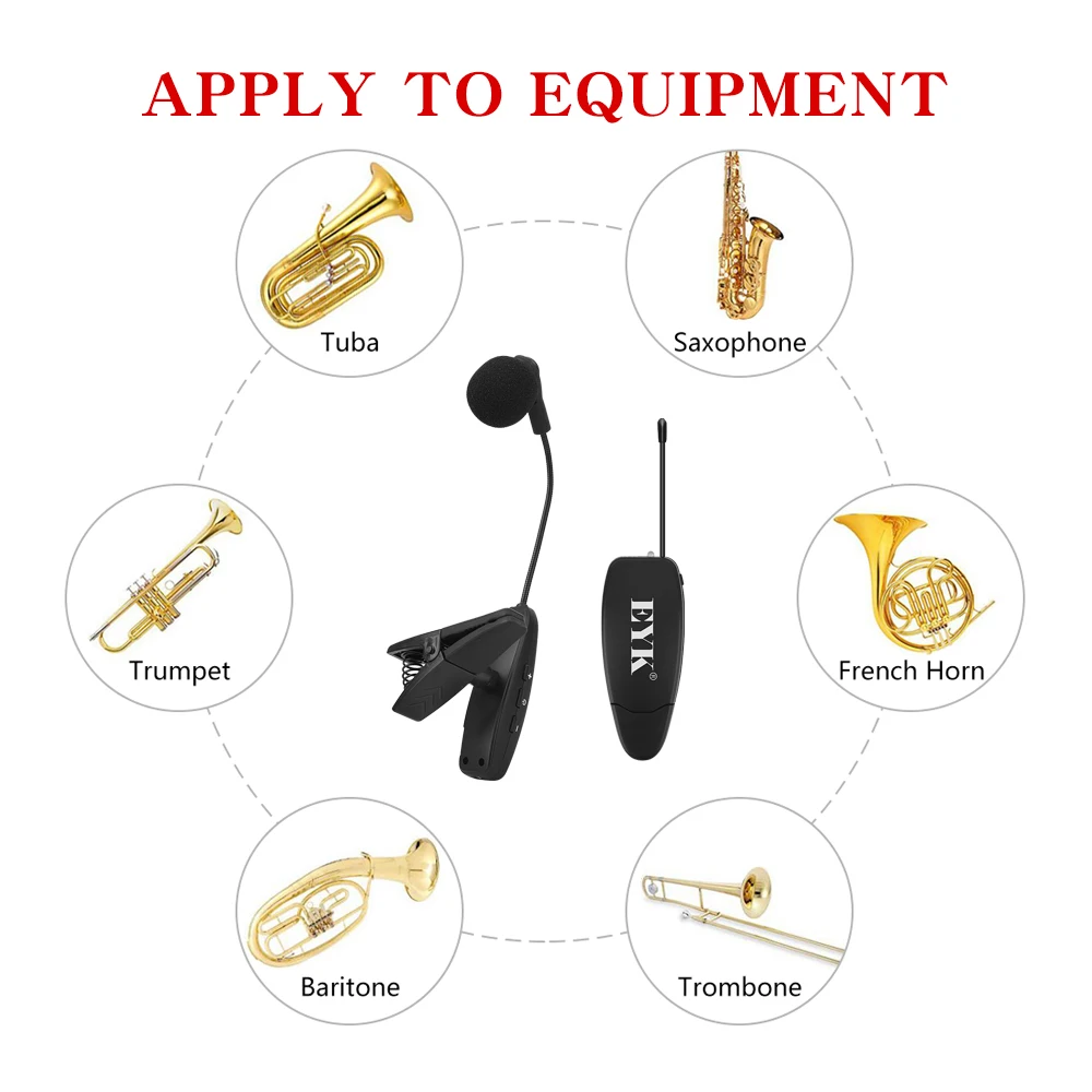 EYK UHF саксофон латунный инструмент микрофон беспроводной микрофон Система клип на музыкальные инструменты для трубы Sax Рог туба флейта