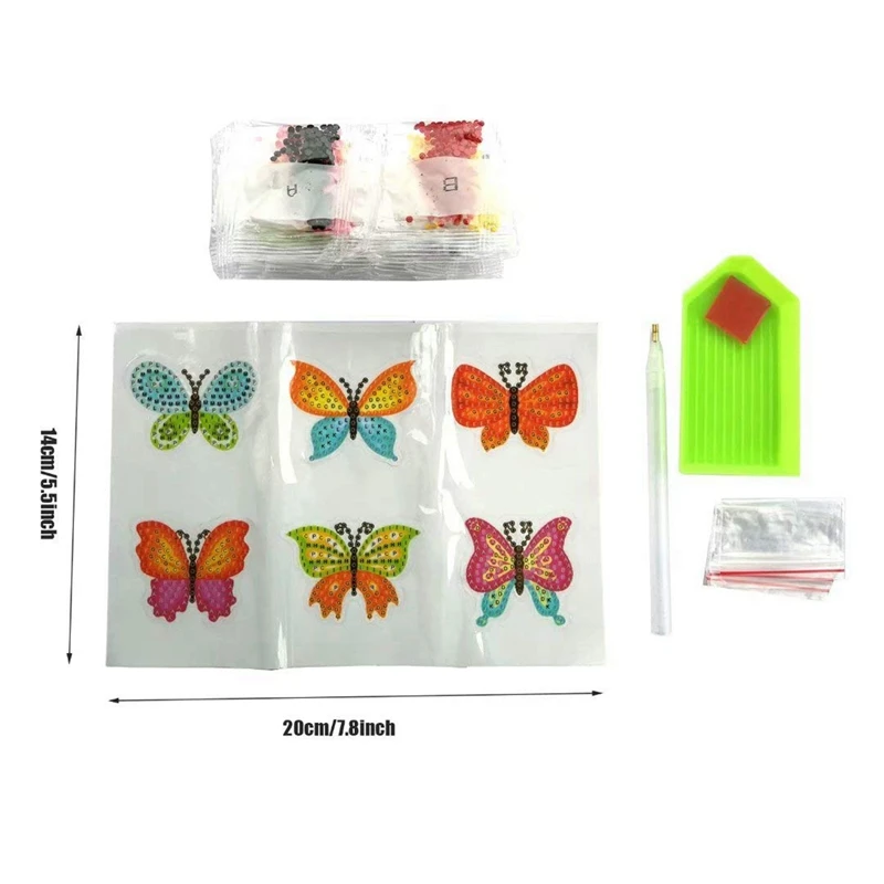 16 наборов наклеек 5D с алмазным рисунком, набор с холстином (без рамки), достаточные Стразы, точечная дрель, глина, точечный сверлильный диск: 6 комплектов, бабочка и 10 комплектов, серия рыб, размер: 4*5 см и 8x8 см
