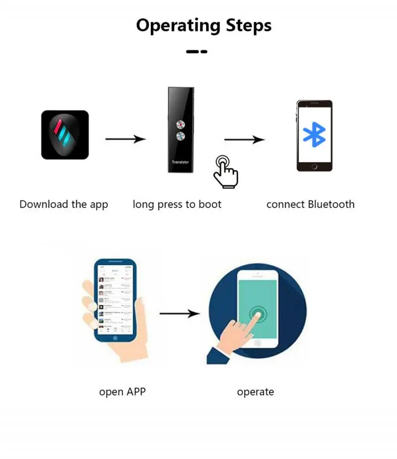 2. Откройте приложение на своем телефоне и откройте Bluetooth, затем запустите переводчика и подключите Bluetooth в соответствии с запросом приложения, пожалуйста, обратите внимание на инструкции по использованию.